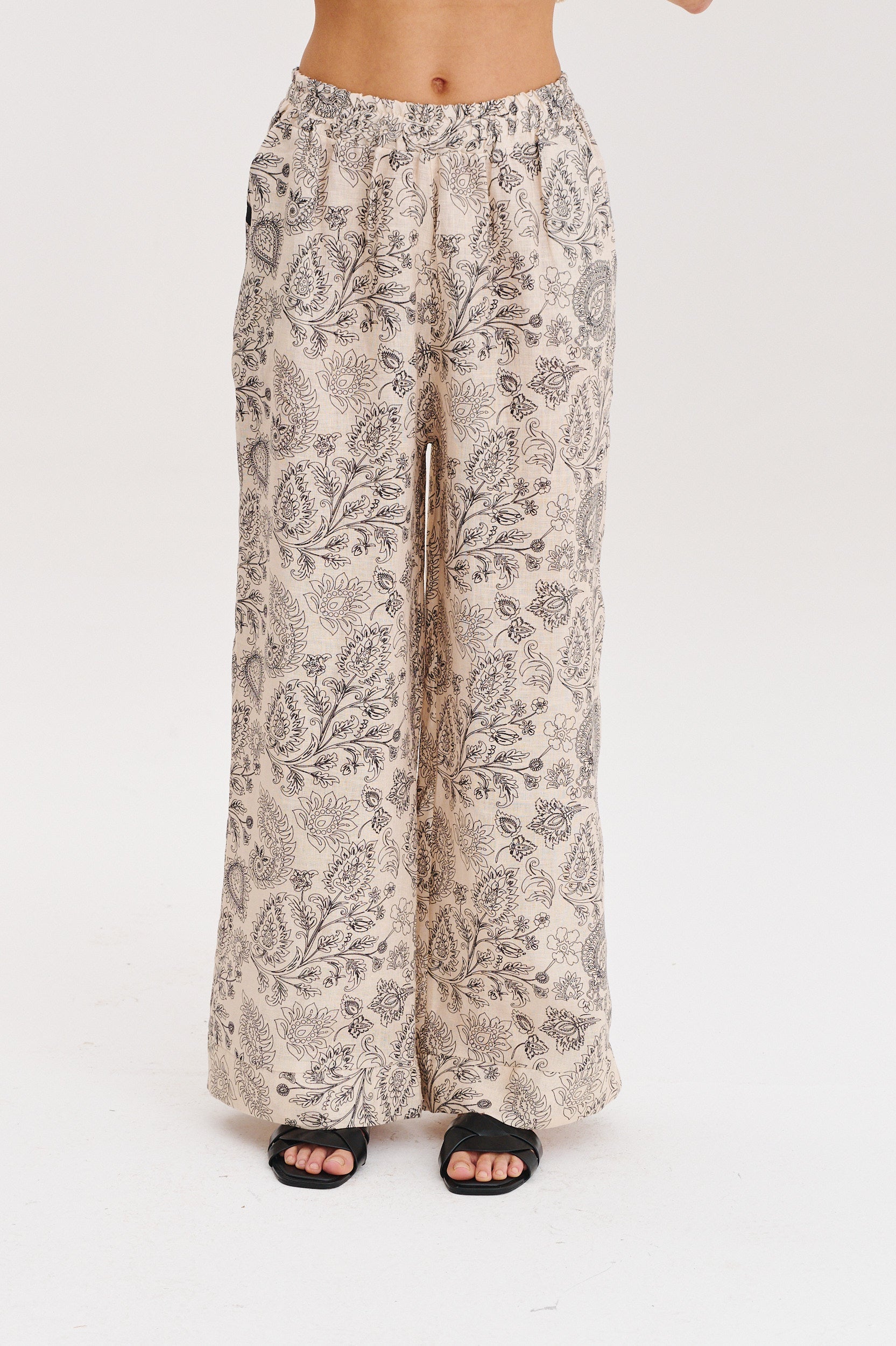 Přirozená lehkost a ležérní šik v duchu boho. Široké lněné kalhoty Boho Muse jsou ztělesněním jarně-letní ležérnosti v elegantním provedení. Vyrobené z vzdušného potištěného lnu zaujmou jemným květinovým vzorem, který dodává umělecký nádech.