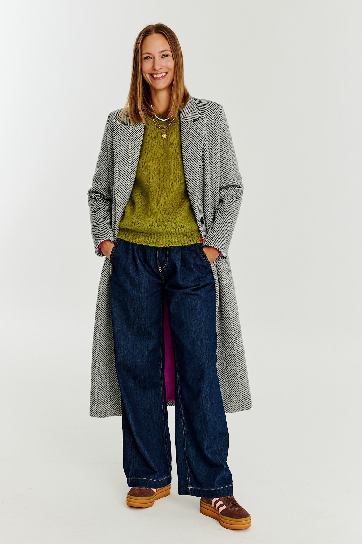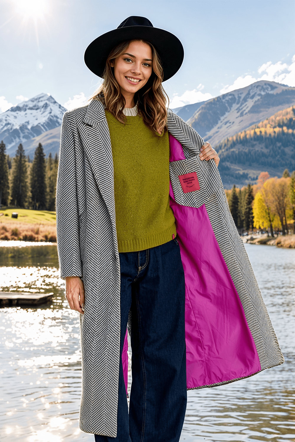 Klasický kabát Break the Silence je módní volbou pro chladnější dny, která kombinuje klasický střih s moderními detaily. Tento kabát s rybím vzorem v šedé barvě bude dokonalým základem pro mnoho outfitů. Tento kabát je skvělou volbou pro vás, pokud hledáte módní a nadčasový kousek, který zůstane ve vašem šatníku po mnoho sezón.