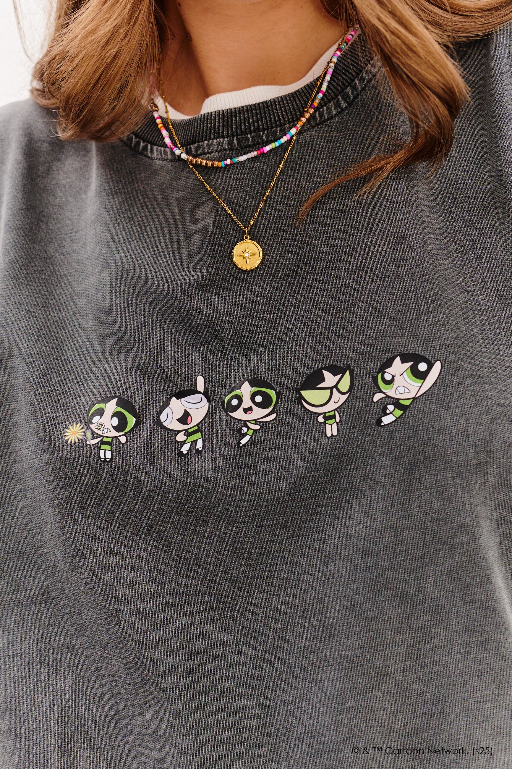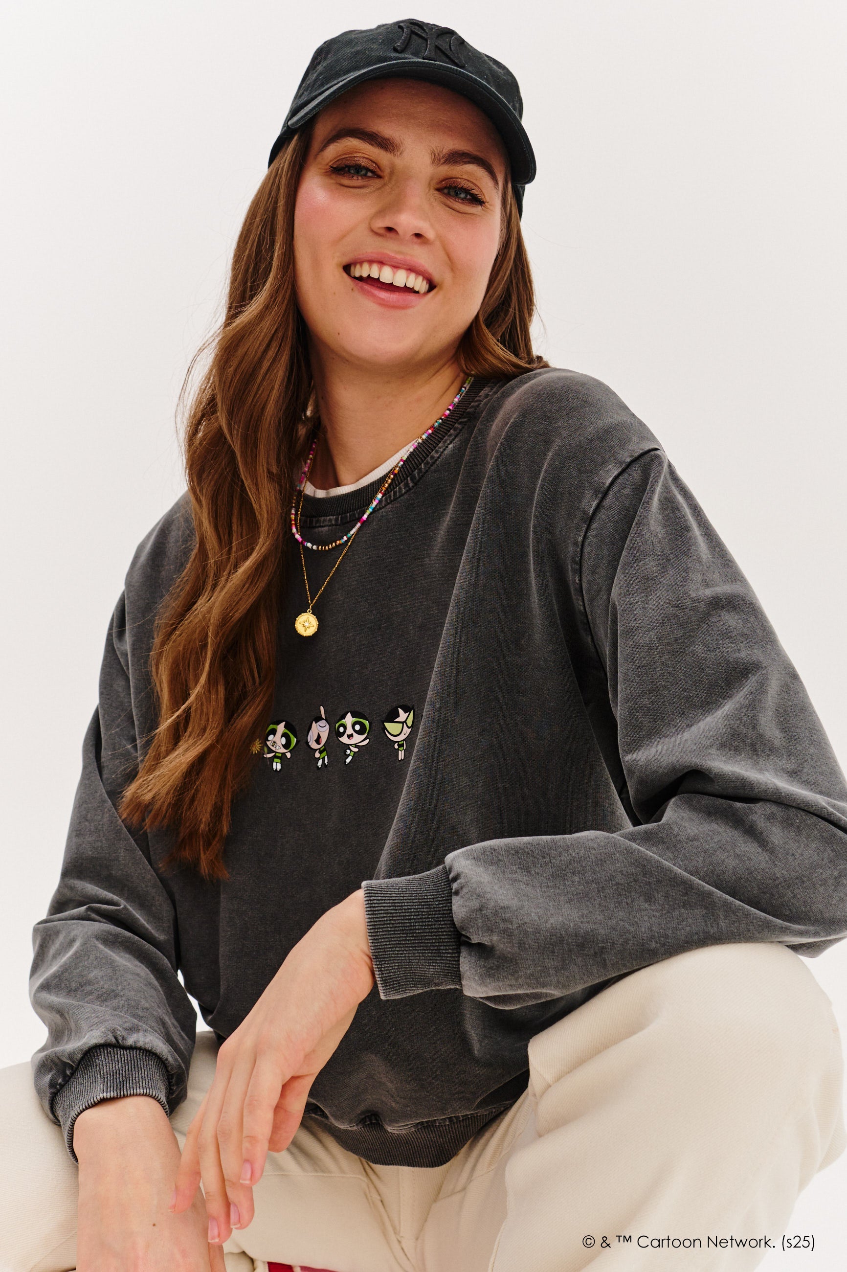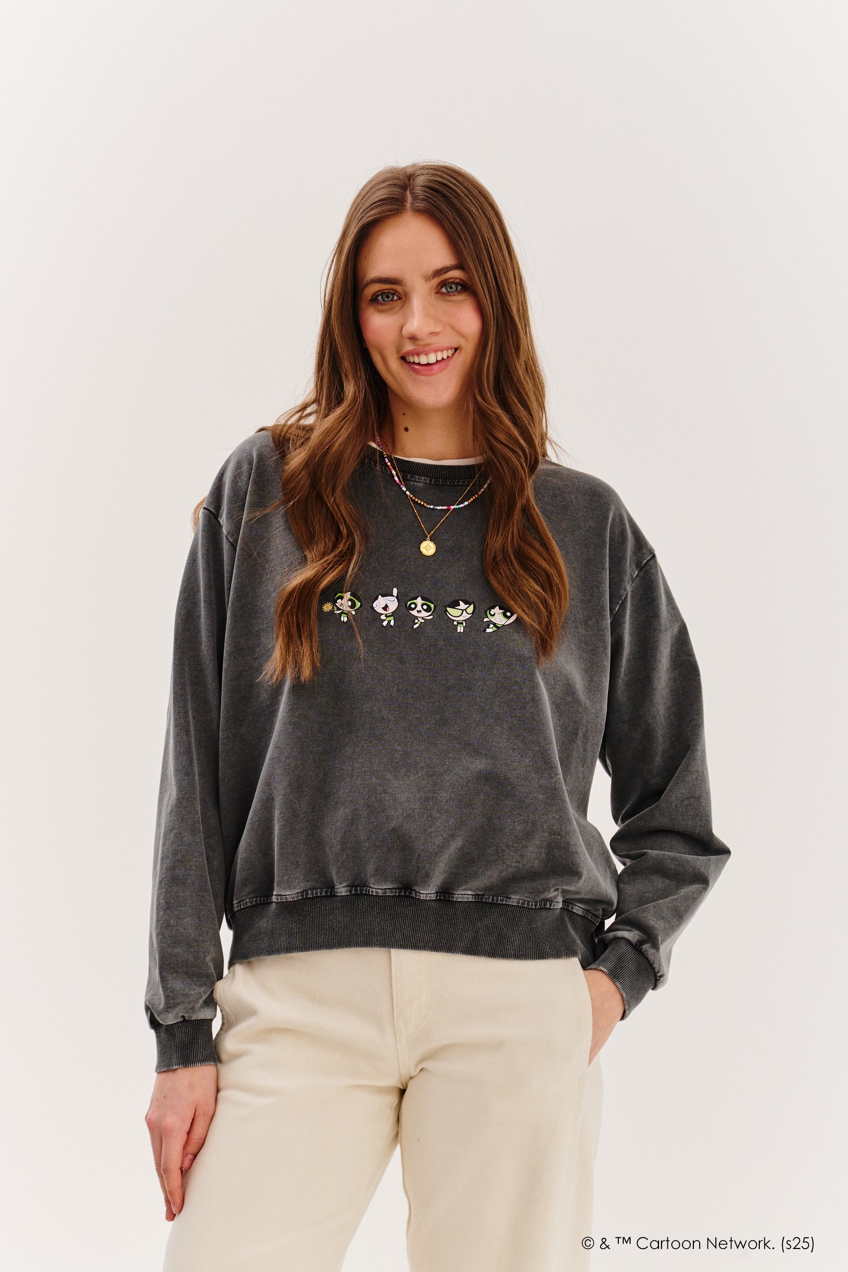 Buttercup v rozkvětu Mikina – vsaďte na klasickou barvu s jedinečnou grafikou! Černá a šedá praná mikina s výšivkami Buttercup je návrhem pro dívky, které rády spojují sílu s uvolněností. Čtyři záběry nejdivočejší z Powerpuff Girls dokonale vystihují její charakter – nezávislost, odvahu a špetku rošťáckého kouzla.