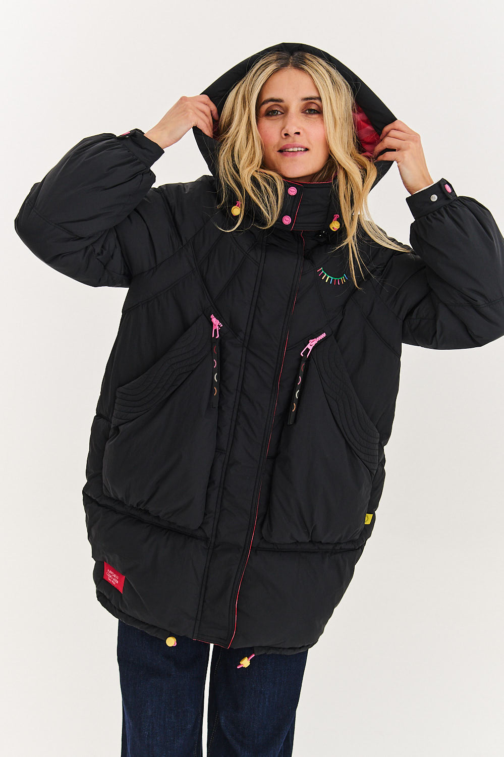 Calgary Mango Shadow jacket is the definition of warmth and comfort in a stylish way. The "Padded Cloud Coat" model is a voluminous down jacket that will wrap you up like a soft cloud. Its black, universal color has been broken with strong color accents.