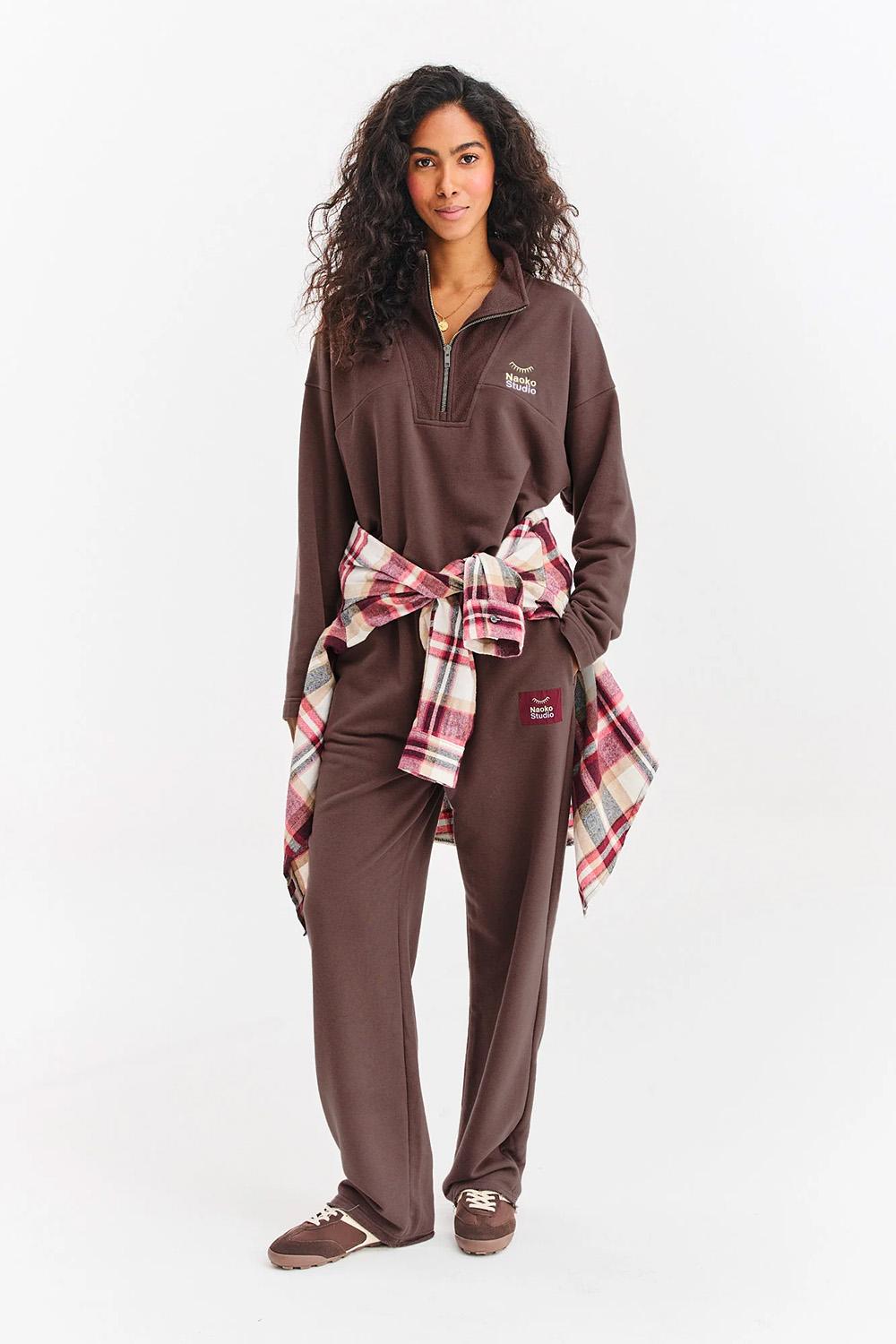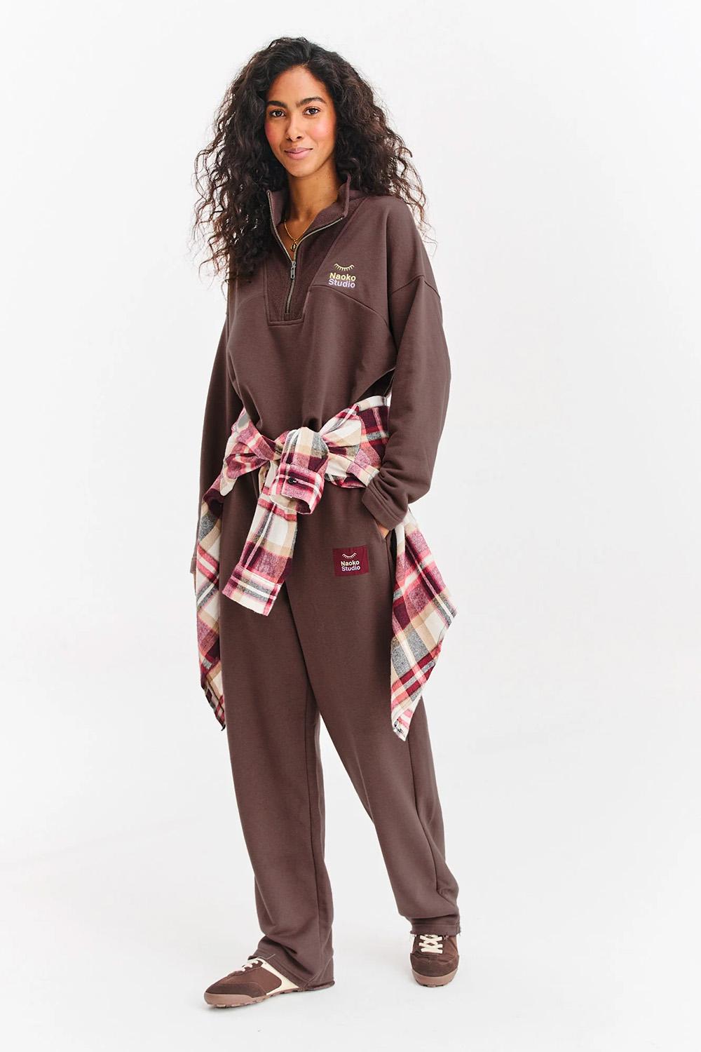 Tepláky Coffee Mousse jsou vaším novým synonymem pohodlí. Jsou vyrobeny z prémiové teplákoviny v lahodné hnědé barvě a jsou ideální pro chvíle odpočinku. Mají rovný, volný střih s elastickým pasem a ohrnutými nohavicemi.