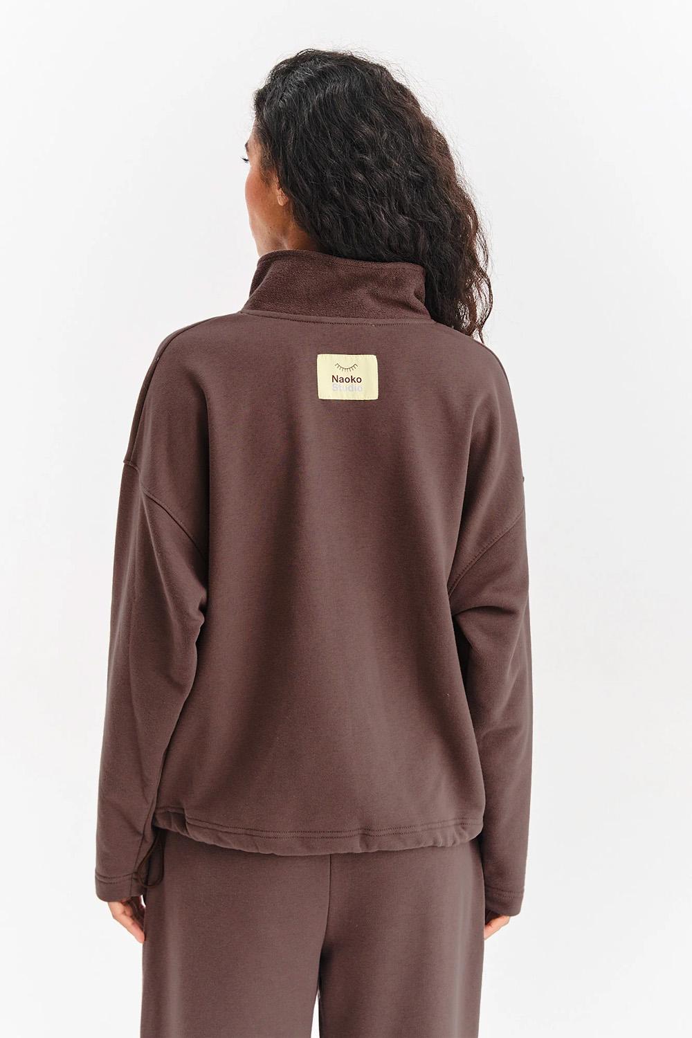 Mikina Coffee Mousse je ztělesněním pohodlí v elegantním provedení. Její krásný hnědý odstín připomíná kávovou pěnu. Mikina má módní střih s vysokým límcem na zip, který umožňuje různé způsoby nošení.