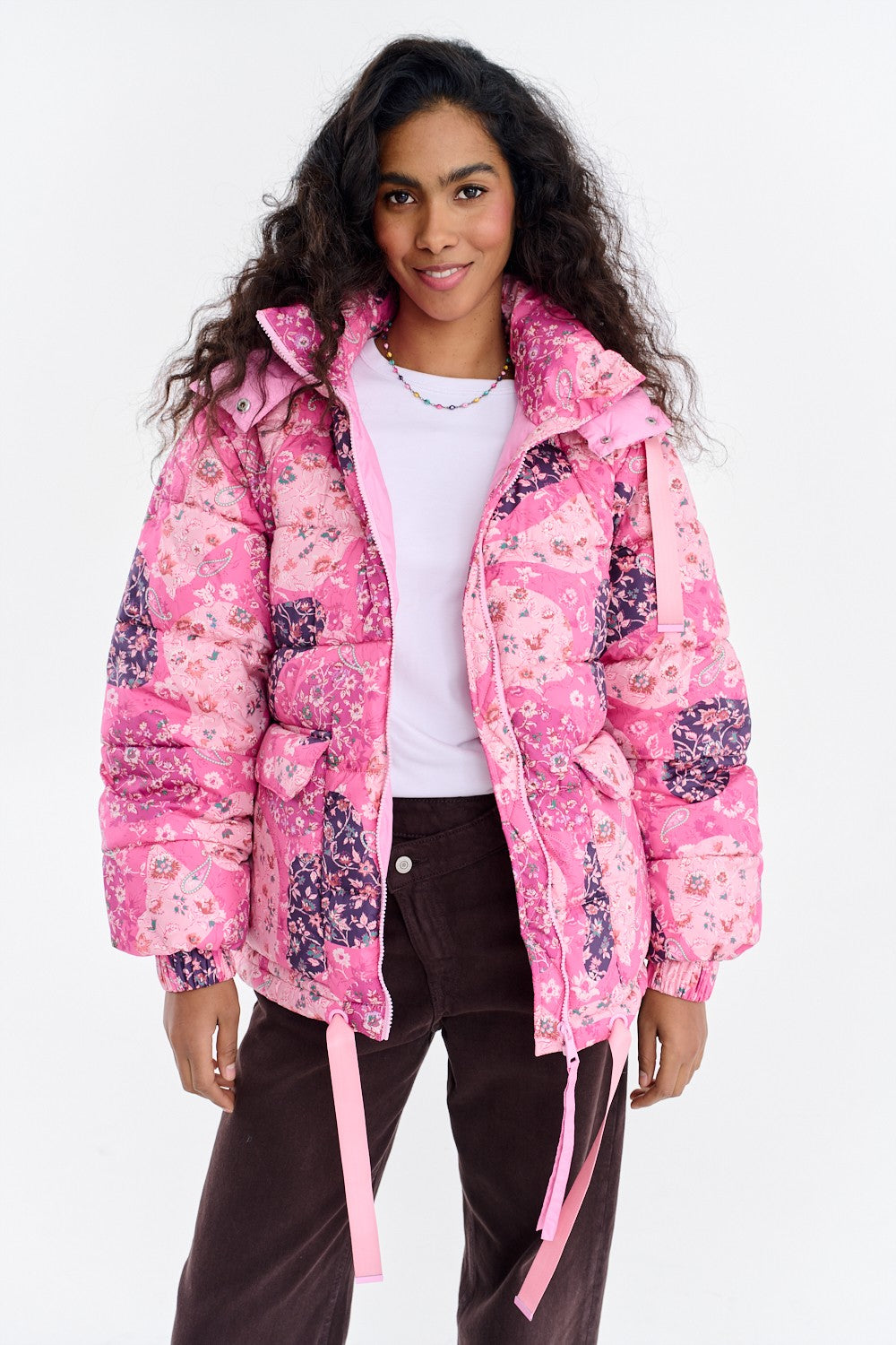 Zimní bunda Cool Cherry je ztělesněním vzorovaného stylu. Kombinuje různé vzory – od květinových po paisley – v energické růžovo-fialové barevné paletě. Je to perfektní volba pro ženy, které se nebojí barev a rády vyniknou.