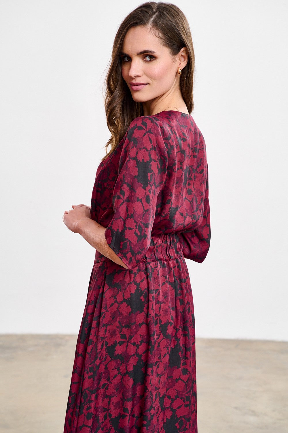 Cranberry Spark midi šaty spojují výraznost s klasickou formou. Zavinovací výstřih krásně zvýrazní krk a vázání v pase umožňuje dokonalé přizpůsobení. Vyrobené z viskózy, jsou vzdušné a pohodlné a tmavý, květinově-abstraktní vzor dodává tajemný nádech.