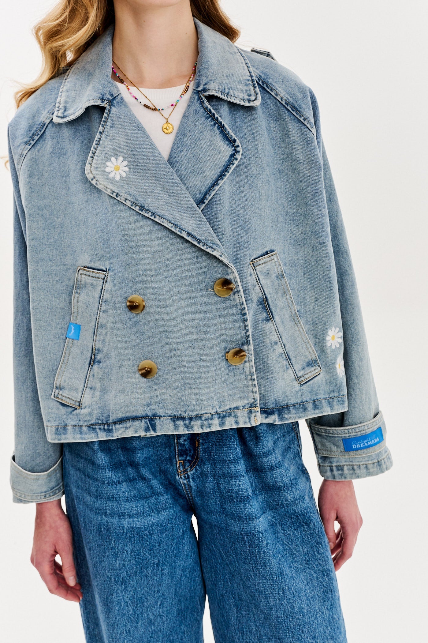 Džínová bunda Daisy Bloom je pro vás ideální volbou, pokud jste milovníkem nadčasových forem v klasickém stylu. Tato krátká bunda s originálními nášivkami je stylovou alternativou ke klasickému denimu. Její oversize střih jí dodává ležérní vzhled a zároveň zdůrazňuje její jedinečný styl