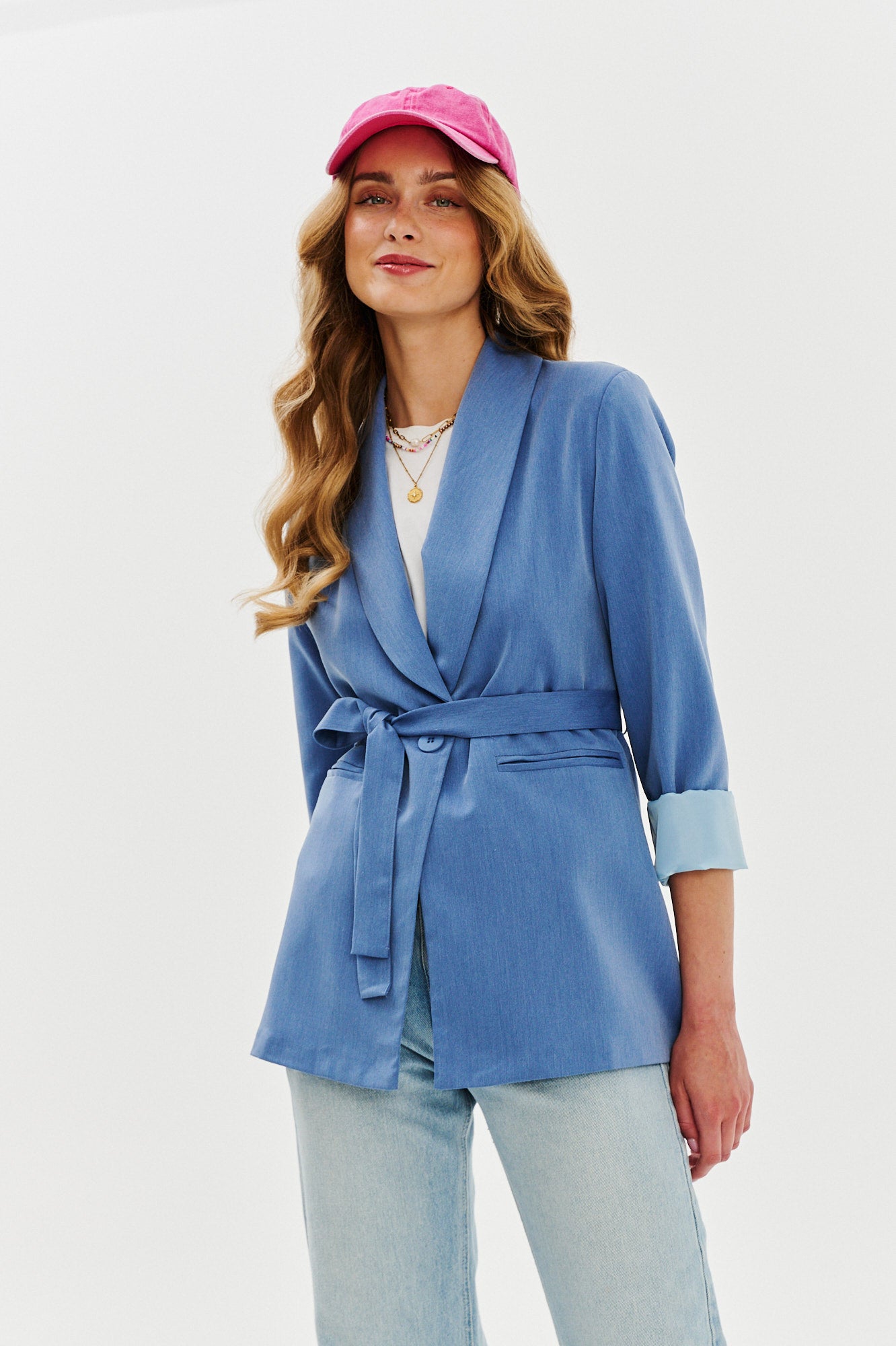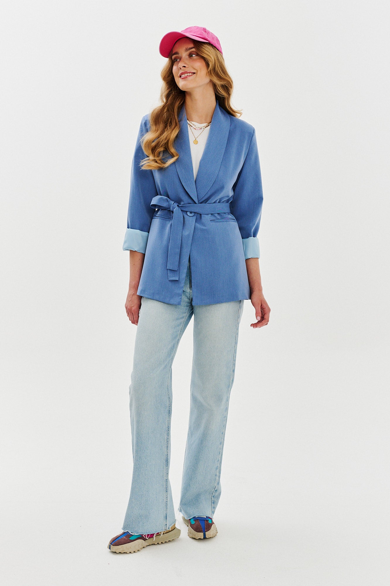 Džínová bunda Denim Moves v pase v džínové barvě je elegantní volbou pro ženy, které oceňují klasický styl v moderním pojetí. Vyrobena z vysoce kvalitní látky v teplém neutrálním odstínu, dokonale zapadá do trendu přirozené elegance. Jemné žebrování jí dodává lehkost, zatímco vypasovaný střih a pásek v pase umožňují individuální přizpůsobení, které zvýrazní siluetu.