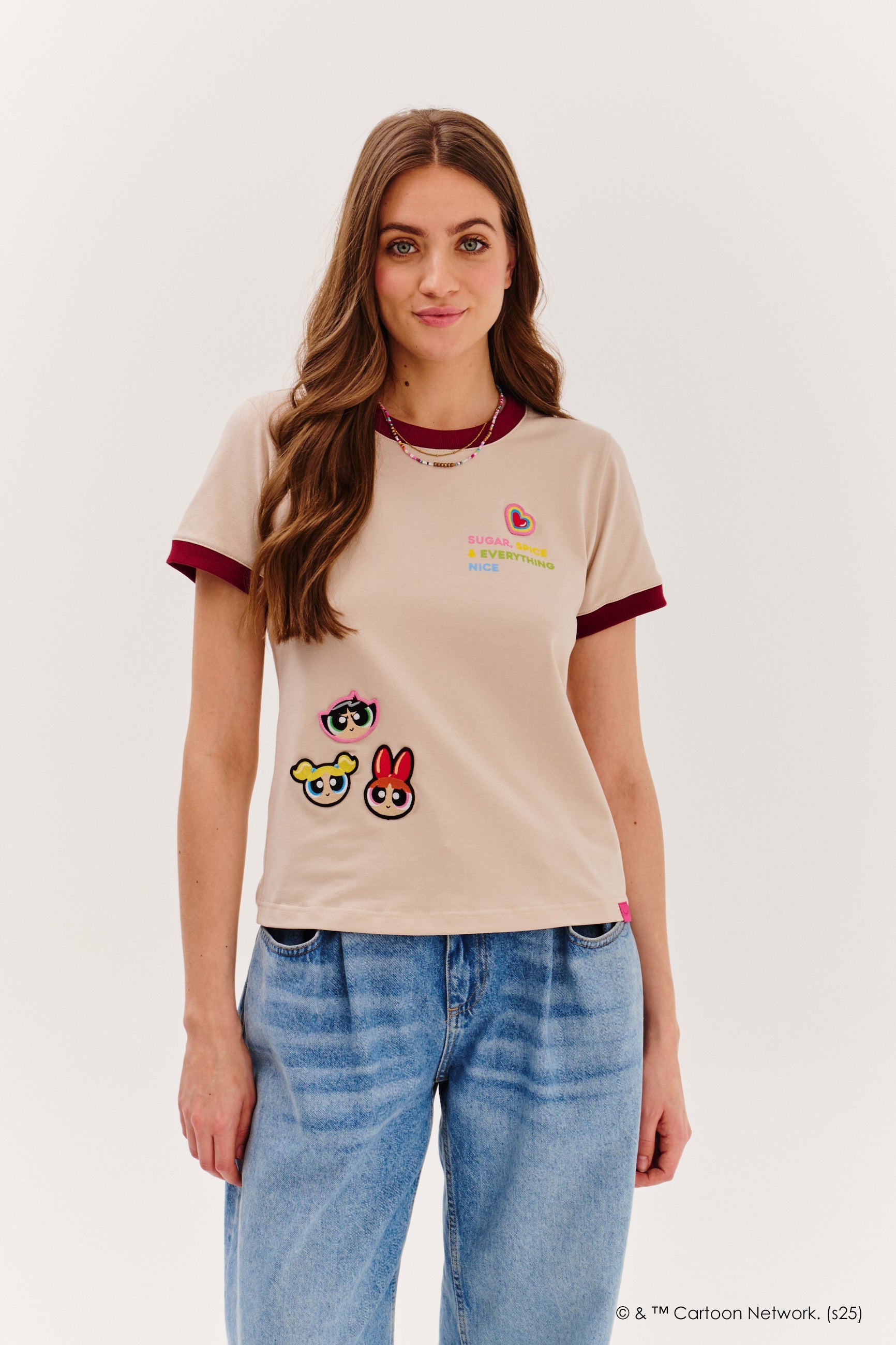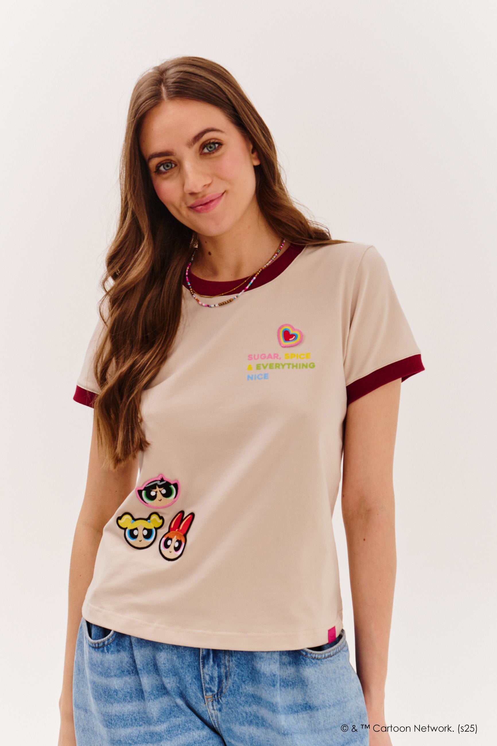 Slogan "Sugar, spice & everything nice" ti připomíná, že můžeš být sladká i silná zároveň – stejně jako Blossom, Bubbles a Buttercup. Noste ho s džínami, sukní nebo pod sakem – a zachraňte svět, i kdyby jen svým stylem.