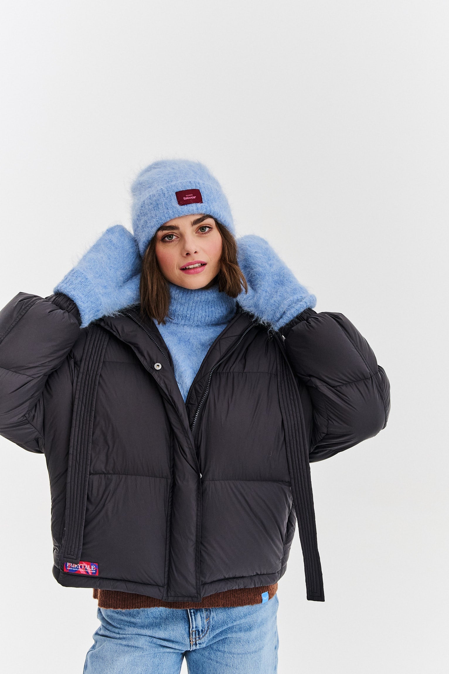 The fluffy texture of the material and the subdued, blue color make the mittens not only practical but also very stylish. Create a cohesive, winter total look by pairing them with the Huggy Frost hat and the Huggy Frost turtleneck scarf.
