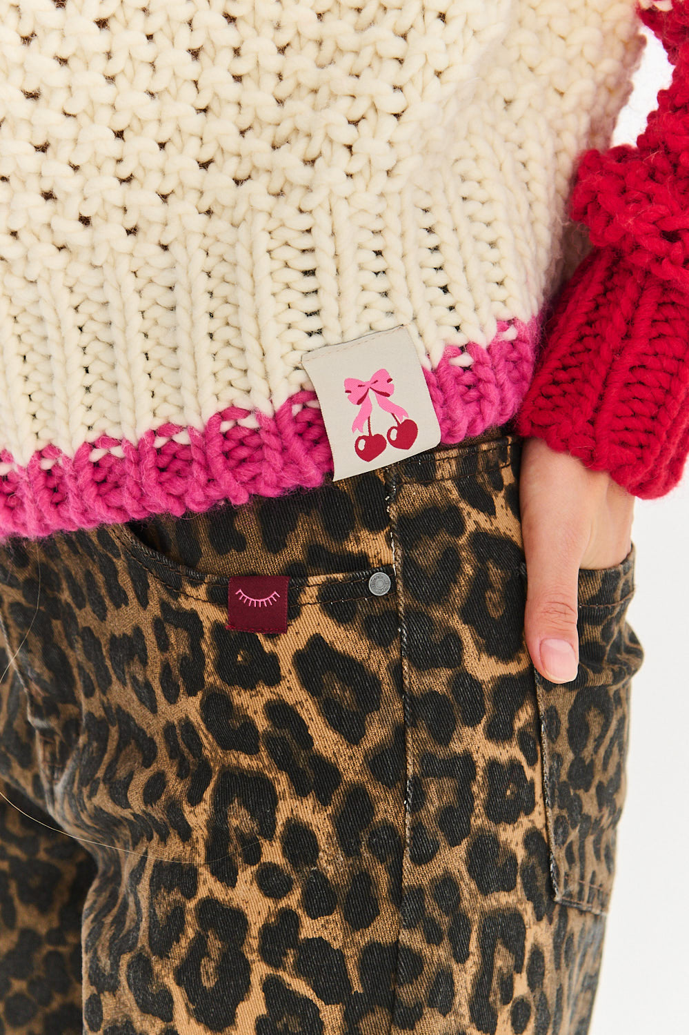 Marshmallow Heat sweater is the definition of coziness. It delights with its thick, fleshy weave and artistic color combination. The main part of the sweater is a creamy white color, which provides a background for stronger accents.