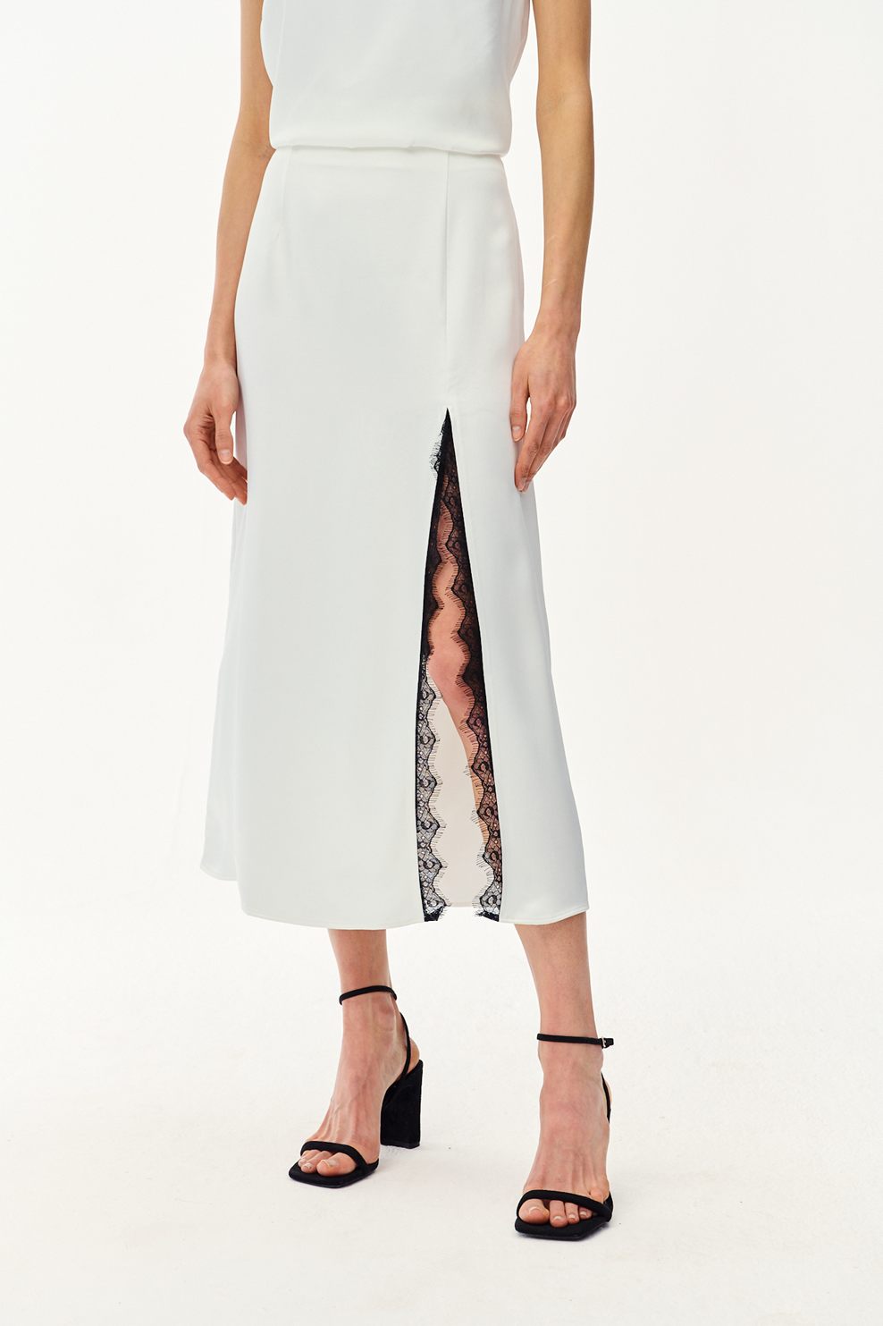 Sukně Mystic Blush je styl, který okouzlí svou jednoduchostí a sofistikovaností. Krémově bílá barva v kombinaci s krajkovým detailem na rozparku vytváří neuvěřitelně svěží a luxusní efekt. Viskózová látka zajišťuje prodyšnost a pohodlí, takže se budete cítit bez námahy po celý den.