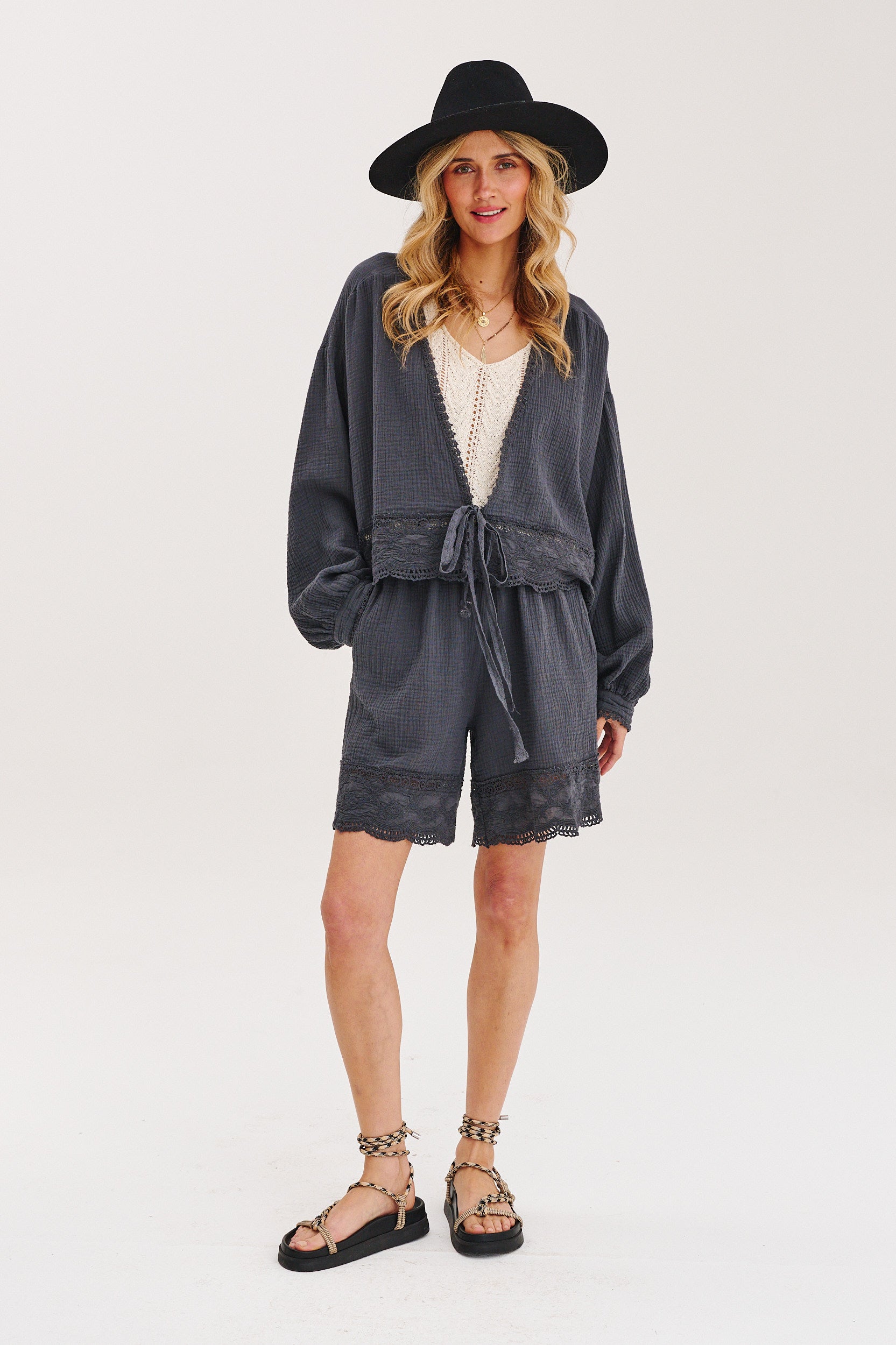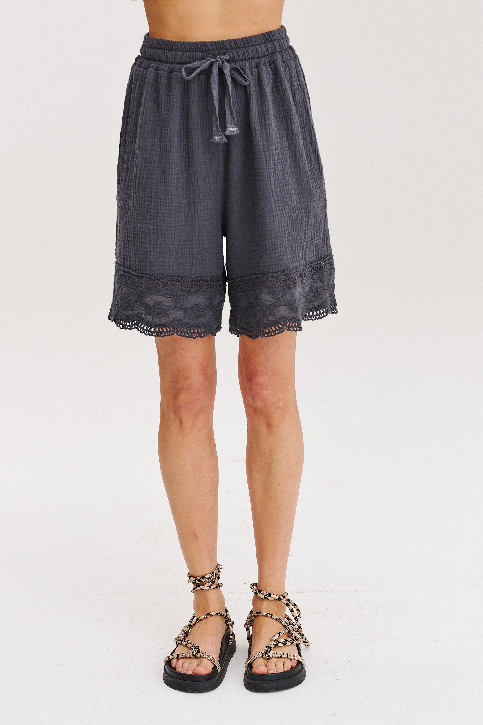 Pokud oceníte kombinaci pohodlí a jemné elegance – mušelínové šortky Midnight Bay byly vytvořeny právě pro vás. Jsou vyrobeny z lehkého, prodyšného mušelínu a zakončené krajkovou stuhou, která dodává ženský půvab.