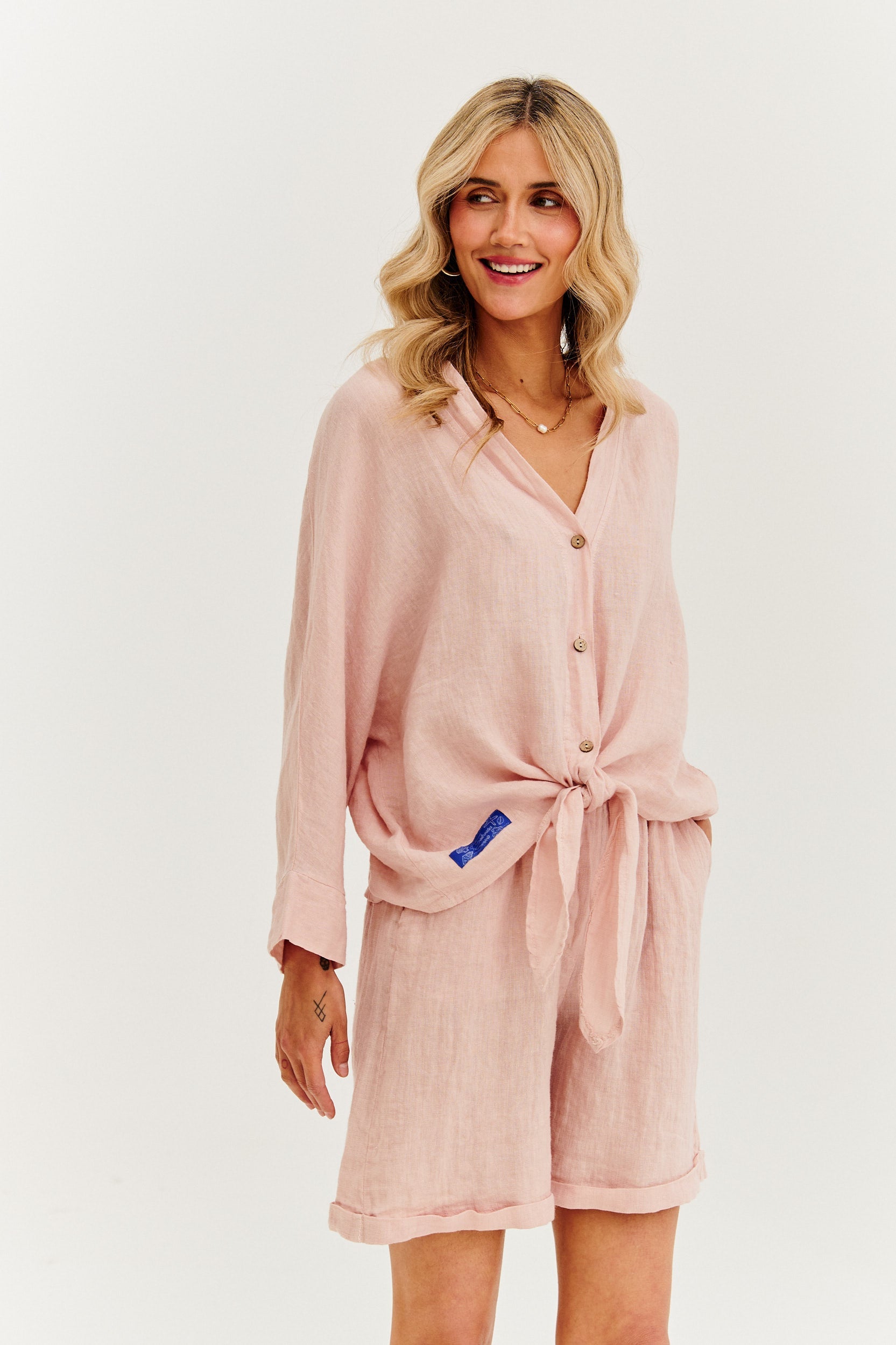 Lněná zavazovací košile Ocean Air je ztělesněním dovolenkové ležérnosti a lehkosti. Je vyrobena z prodyšného lnu a má oversize střih, který zaručuje pohodlí i v horkých dnech. Dlouhý rukáv s možností ohrnutí a zavazování vpředu jí dodává styl, který snadno přizpůsobíte své postavě i příležitosti.