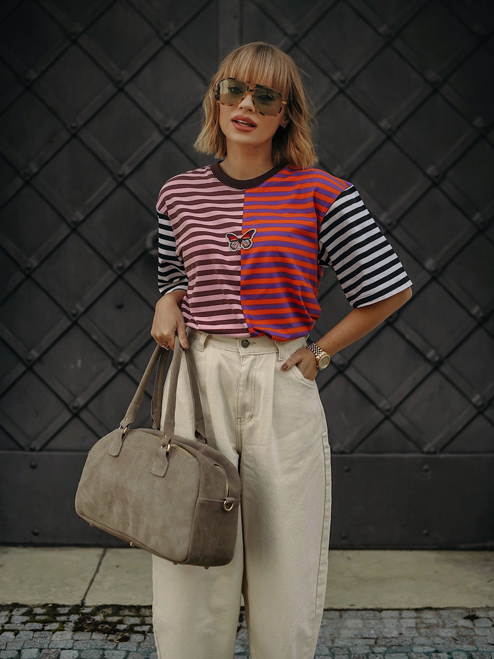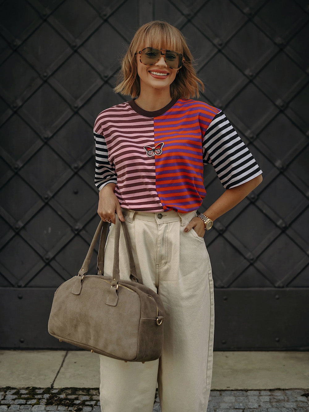 Jednoduchý střih je zvýrazněn výraznými pruhy a kreativním blokováním barev. Painted Wings je pro ty, kteří si rádi hrají s módou a touží po něčem víc než obyčejném – je to oslava tvůrčího ducha.