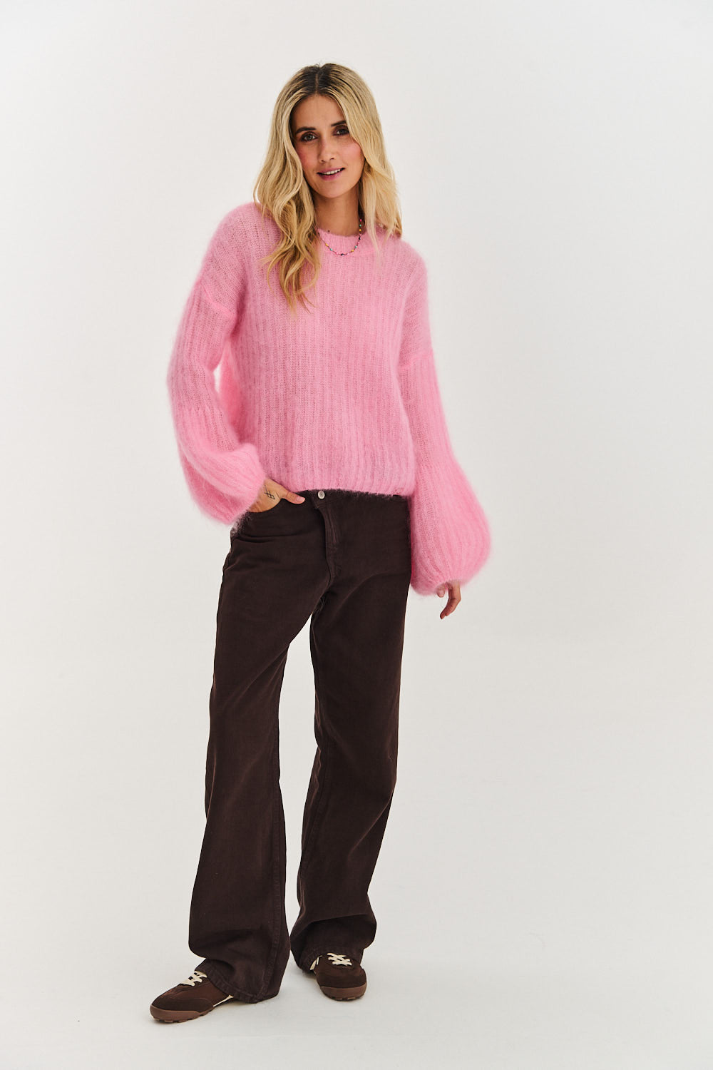 Peony mohair sweater is a real gem in the collection. It combines the luxurious softness of mohair with an extremely fashionable cut. The main role is played by spectacular wide balloon sleeves, which add lightness to the silhouette.