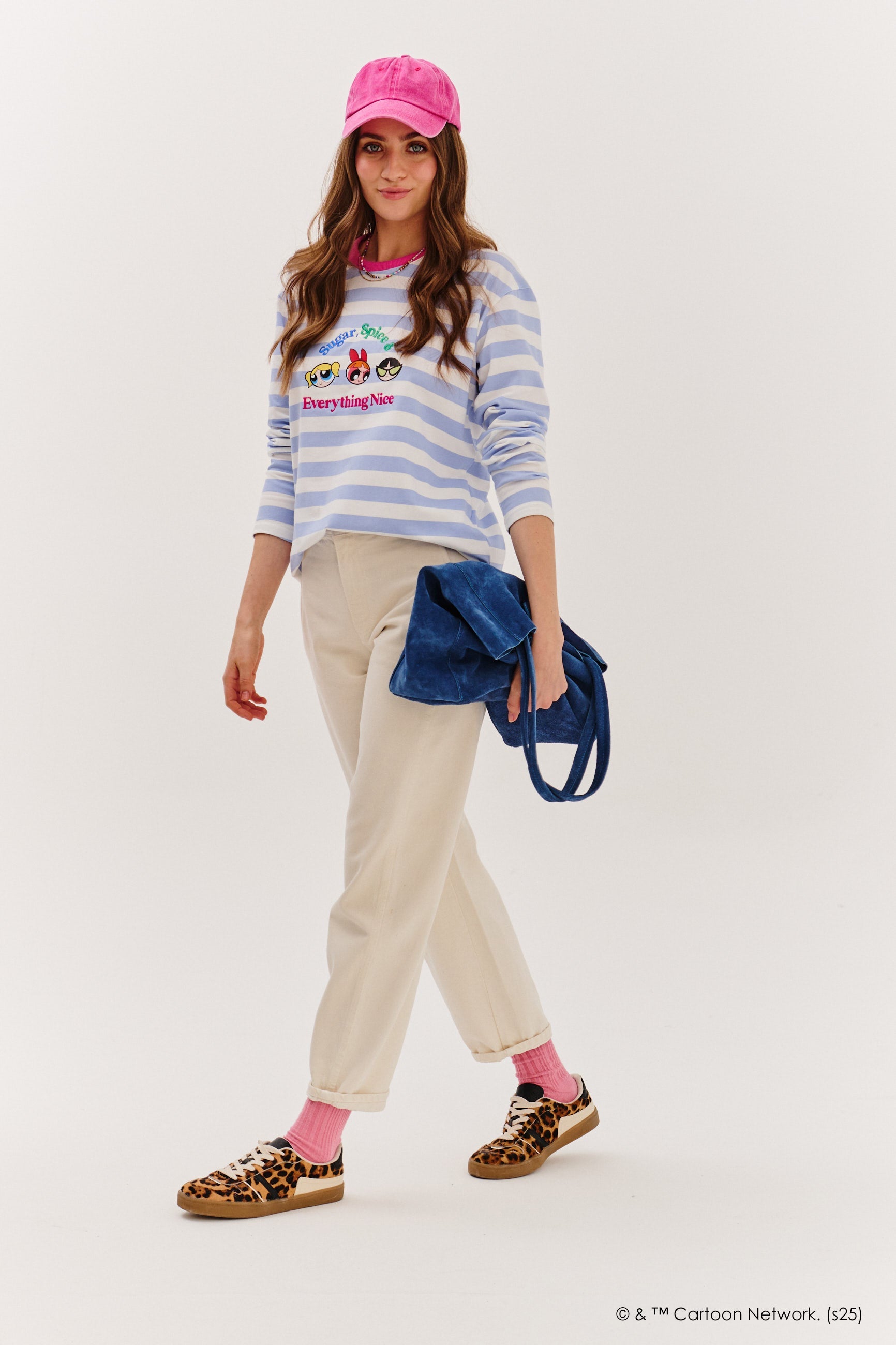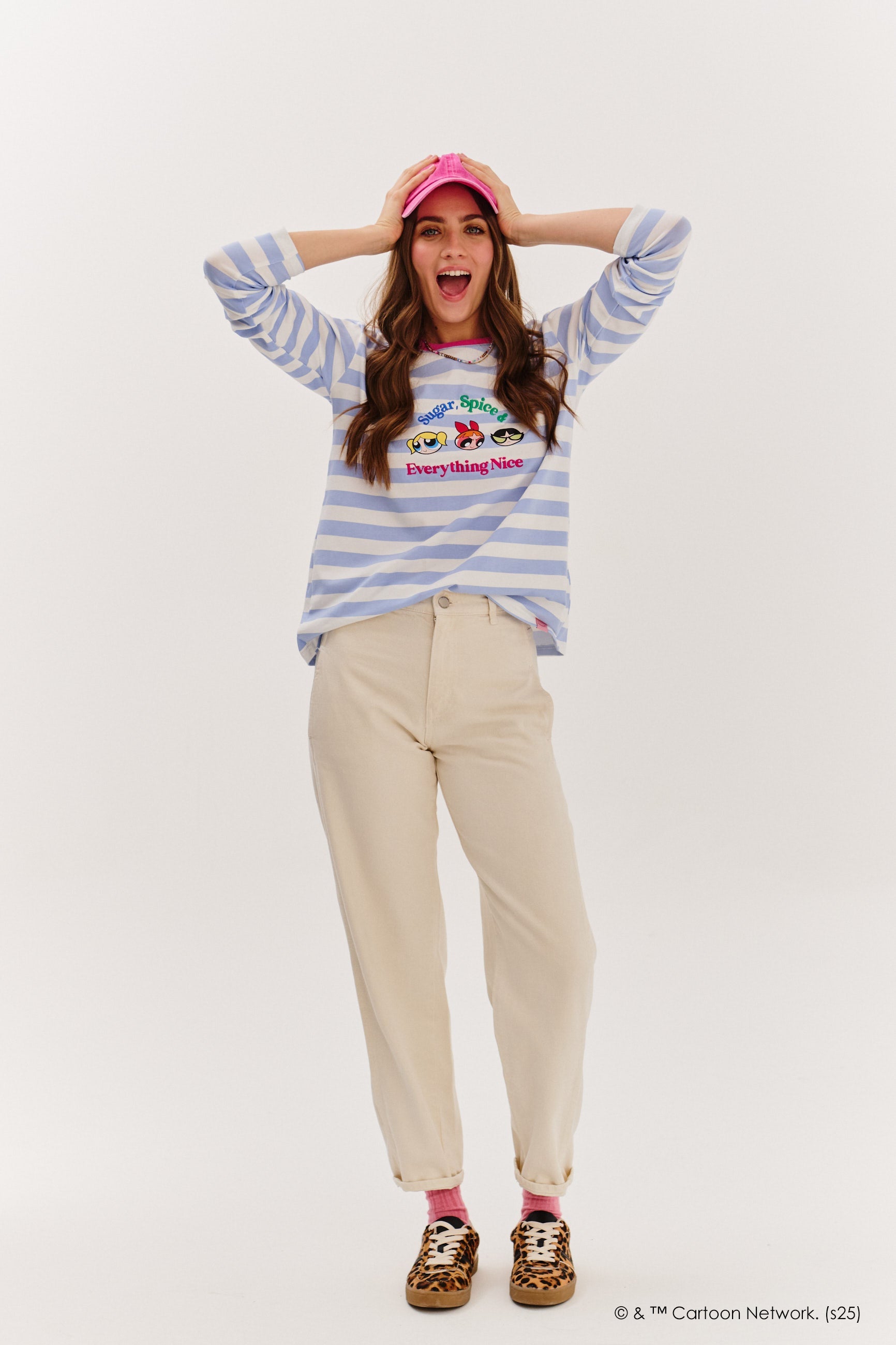 Powerpuff Girls dlouhý rukáv je to nejlepší – v jednom oděvu! V pastelově modrých a bílých pruzích, s barevným potiskem Powerpuff Girls a sloganem „Sugar, Spice & Everything Nice“, vás přenese do světa dětské bezstarostnosti a animované energie.