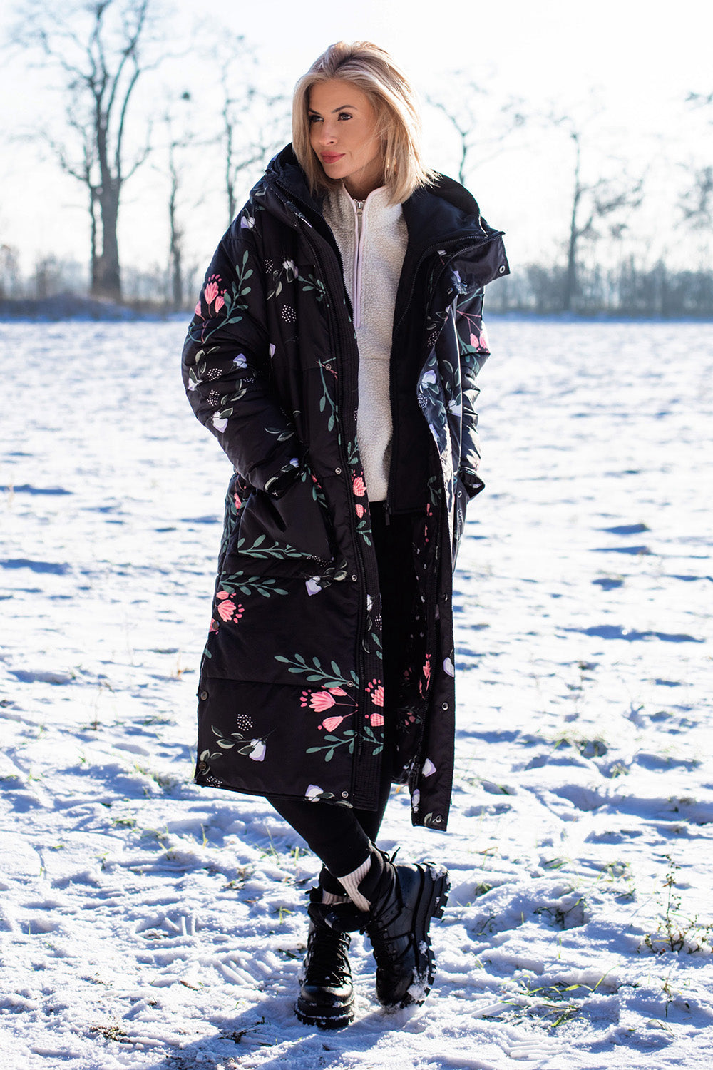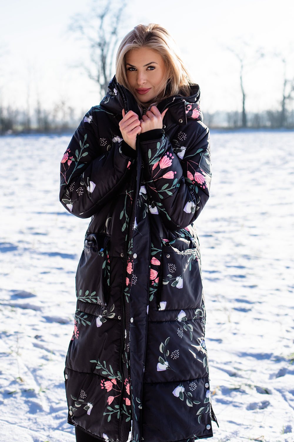 Černá zimní bunda s květinami – zajímavá volba pro zimní sezónu