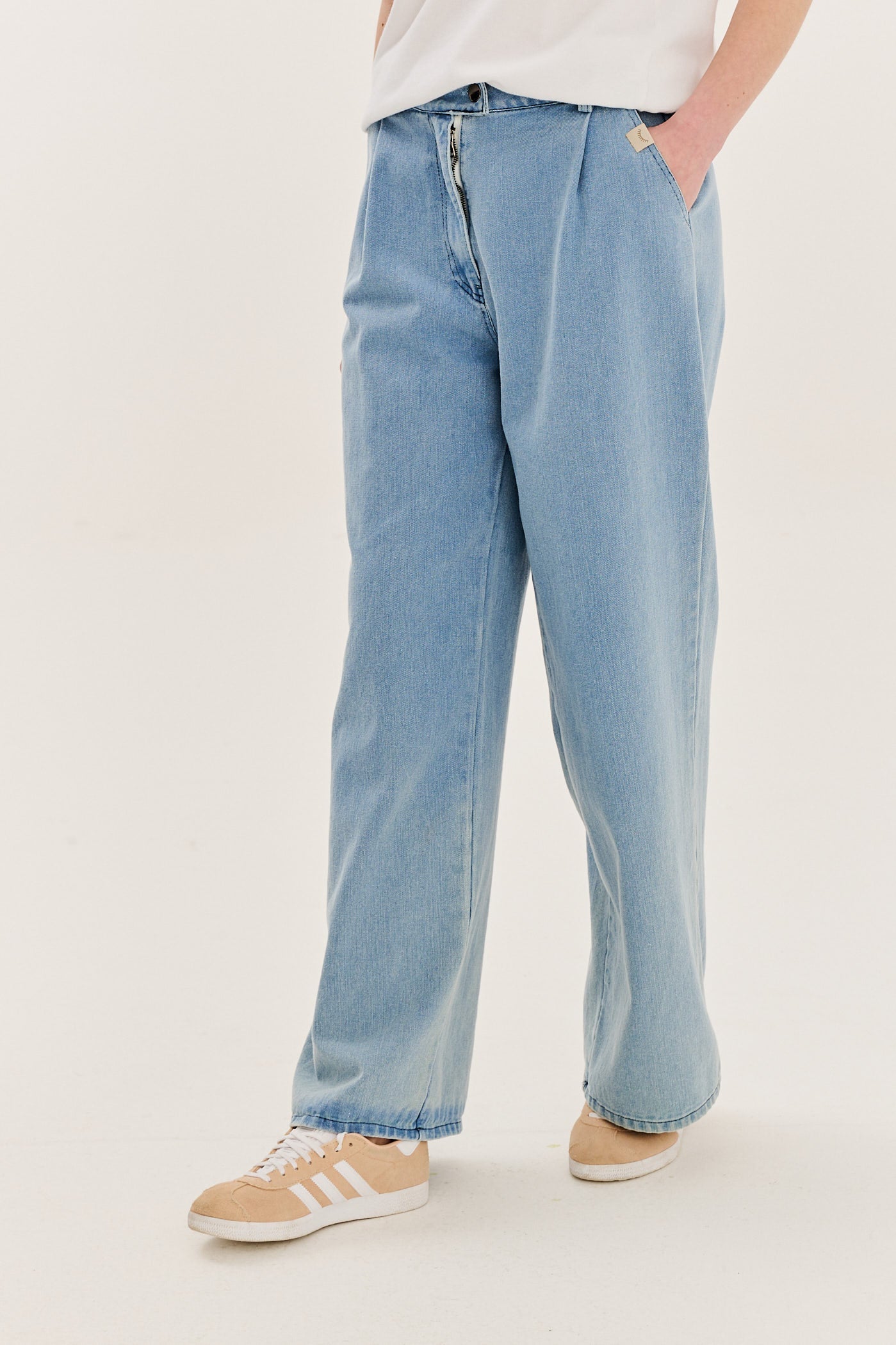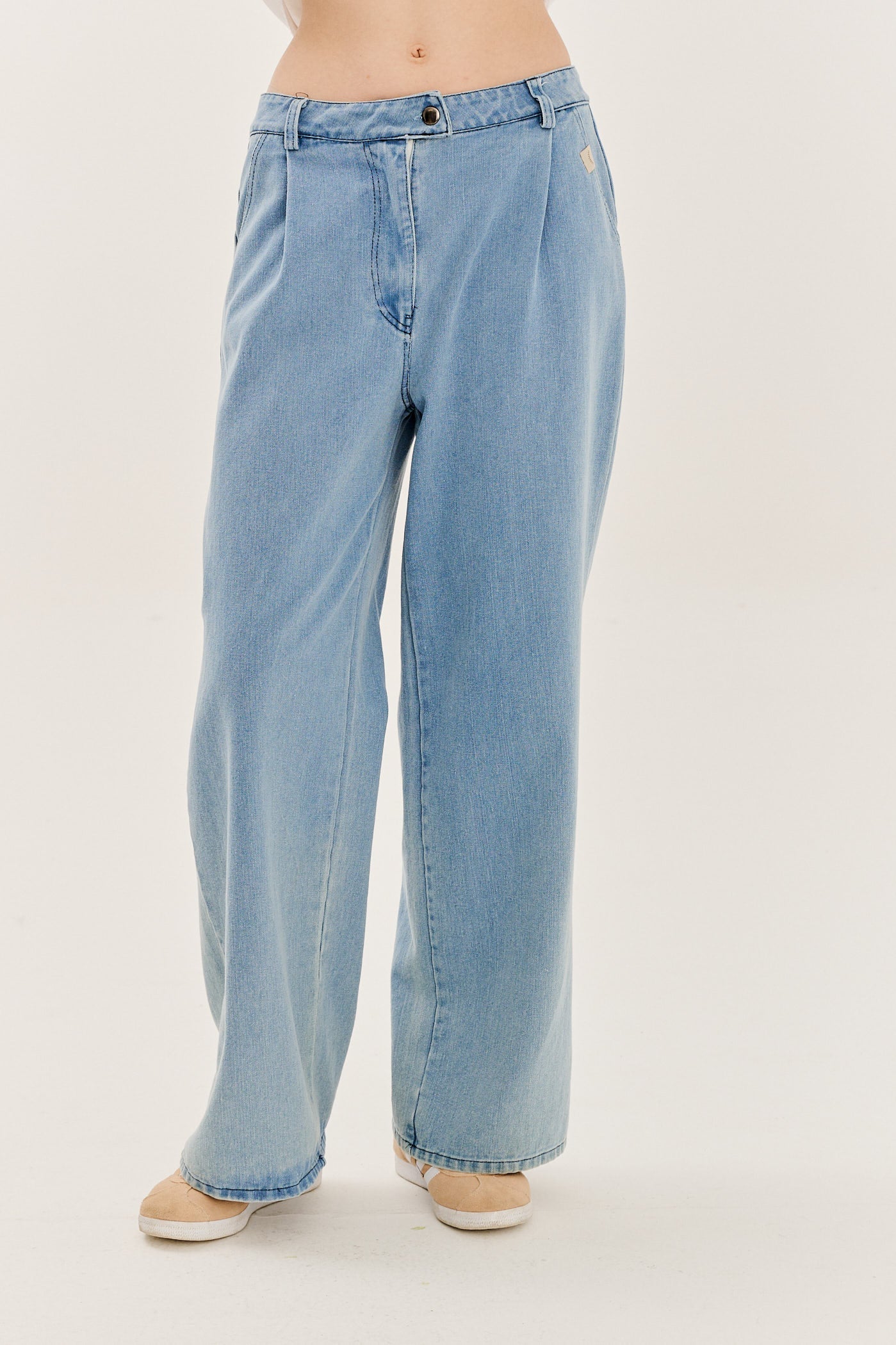 Nadčasové široké džínové kalhoty jsou esencí svobody a stylu. Jejich volný střih je nejen pohodlný, ale také nesmírně módní a dodává každému outfitu nadčasový nádech. Jemný odstín denimu rozjasní každý styling a dodá mu lehký a svěží vzhled.