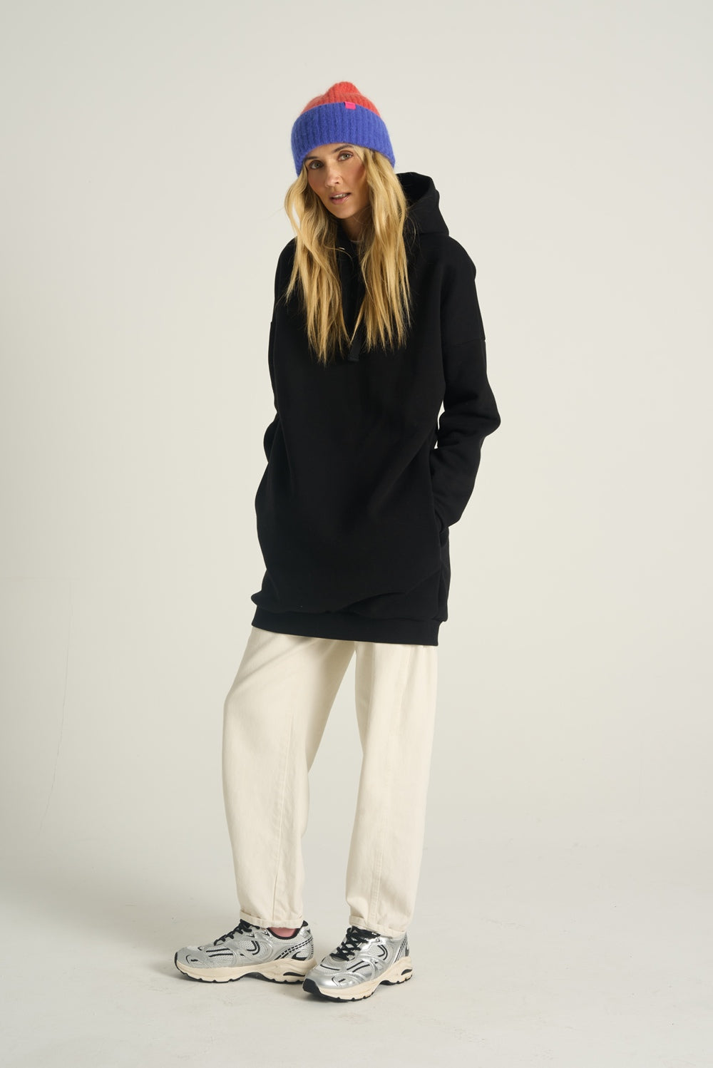 Pohodlná mikina z měkké látky, kterou lze nosit také jako šaty.