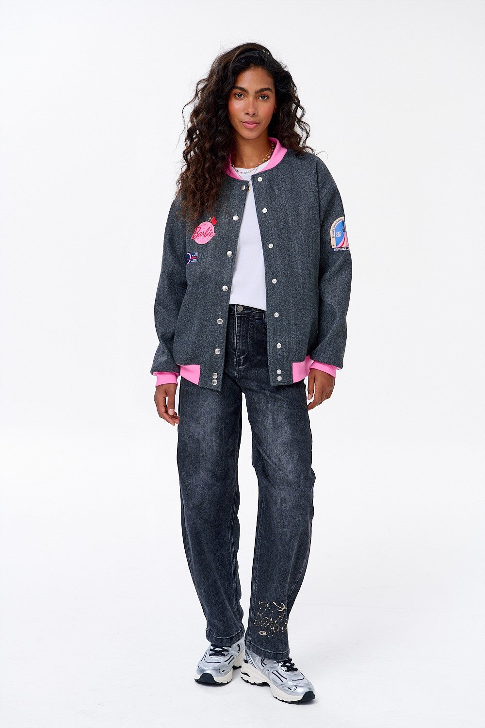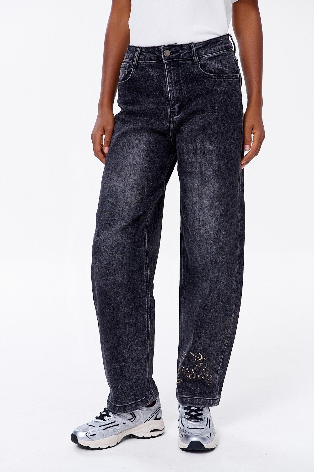 Barbie jeans are classic denim with a twist. Made of dark, slightly washed denim, y feature a fashionable, looser fit with a high waist that perfectly flatters figure. Perfect for everyday wear, but with a cosmic twist.