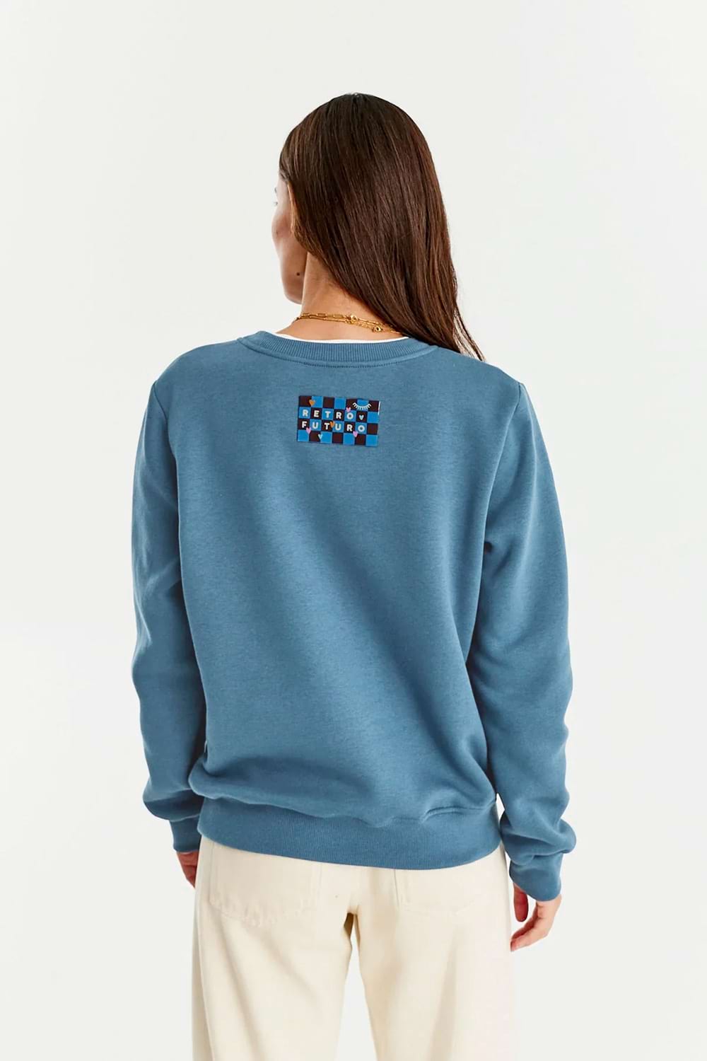 Das Sweatshirt hat einen figurbetonten Schnitt.