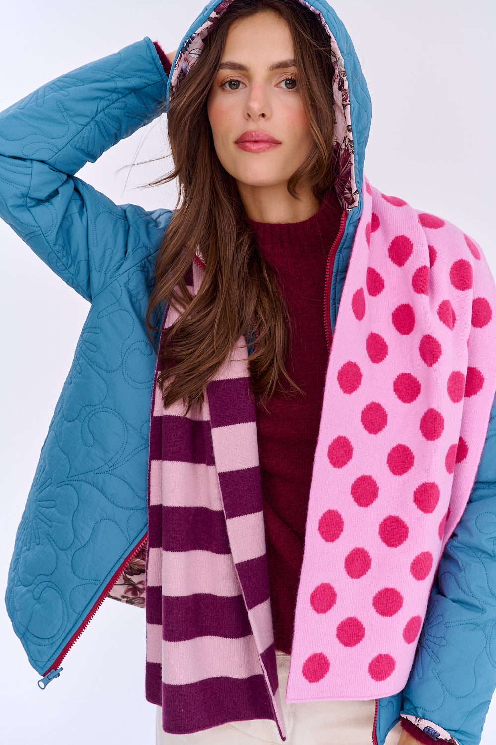 Cupcake Schal ist ein süßes Accessoire für kältere Tage – verspielte Polka-Dots kombiniert mit kräftigen Streifen bringen Frische, Energie und einen stilvollen Touch. Ein fröhliches Accessoire, das jedes Outfit aufhellt.