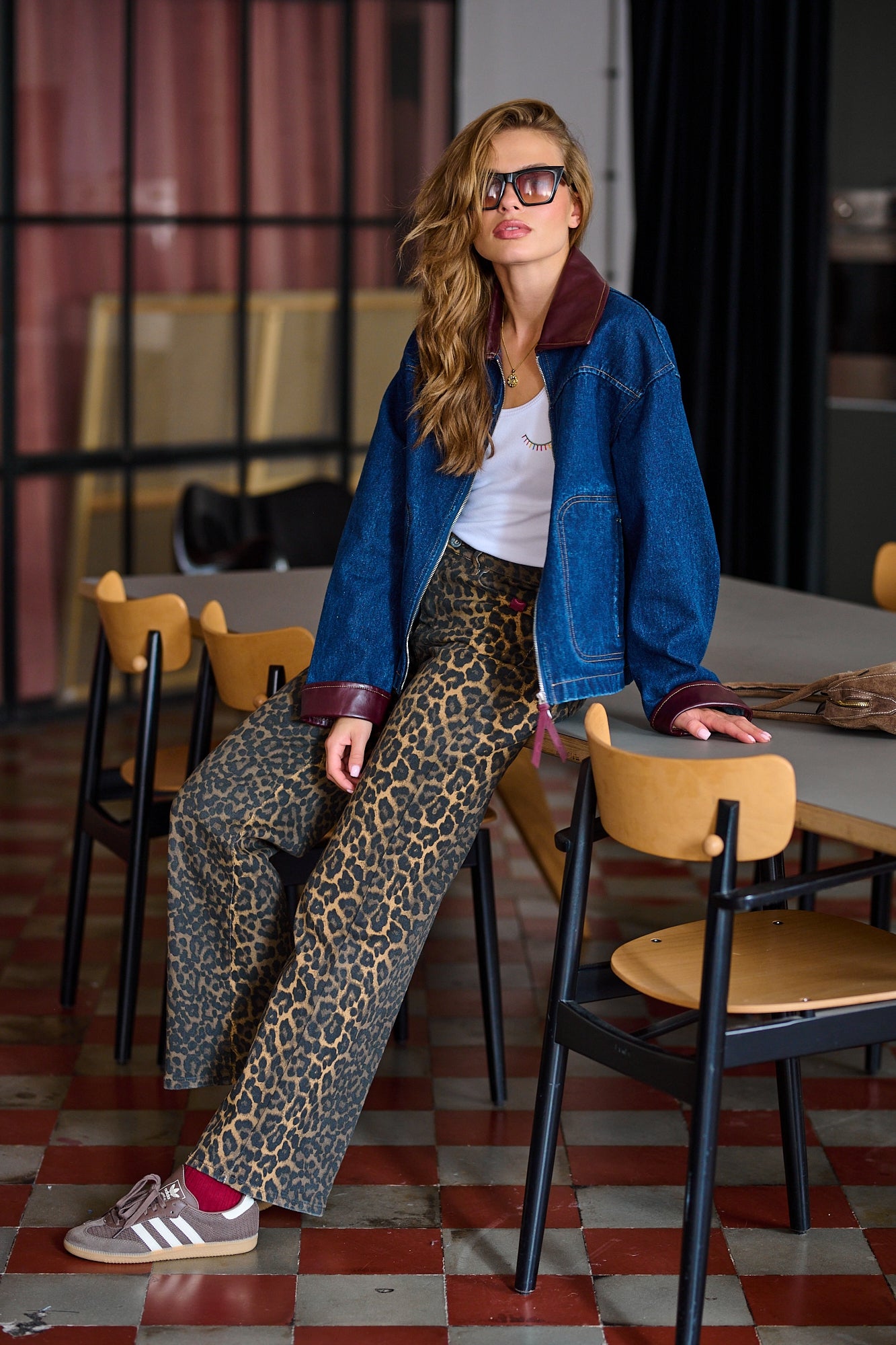 Die Deep Mood Jeansjacke ist eine neue Version des ikonischen Schnitts, entworfen für Frauen, die zeitlosen Stil und Komfort schätzen. Die Jacke hat eine lockere Passform und wird mit einem Reißverschluss geschlossen. Kontrastierende, bordeauxrote Abschlüsse am Kragen, an den Bündchen und innen verleihen ihr einen originellen Charakter, der perfekt zum dunkelblauen Denim passt. Zwei Taschen auf der Vorderseite unterstreichen ihren praktischen und stilvollen Charakter.
