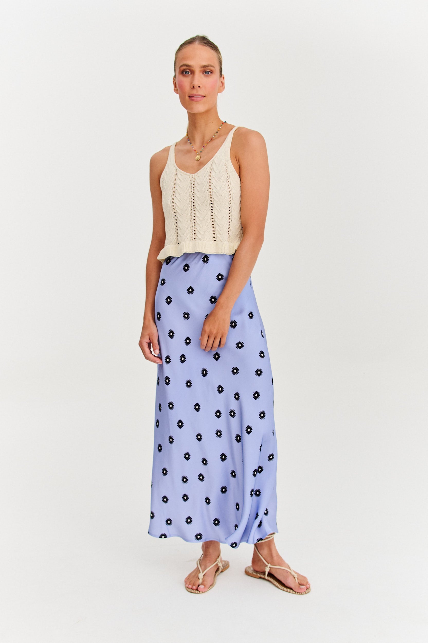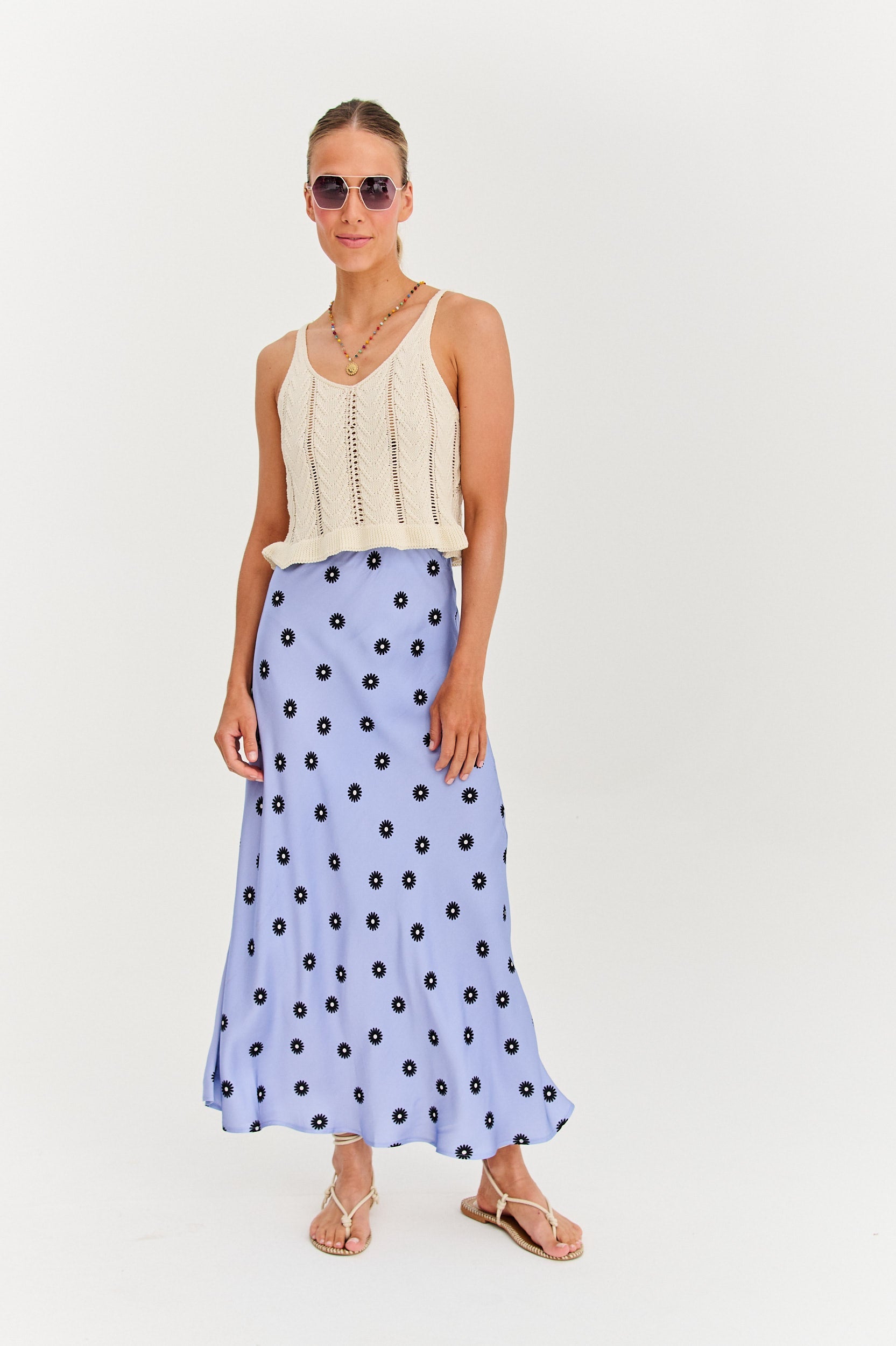 Gefertigt aus hochwertiger Viskose ist dieses Maxiteil die perfekte Wahl für warme Tage. Die ausgestellte Silhouette und der elastische Bund sorgen für Komfort und Vielseitigkeit, sodass du es mühelos mit einem Crop-Top, Hemd oder Badeanzug kombinieren kannst. Es ist der Rock, der jedes Outfit wie einen Sommerurlaub wirken lässt.