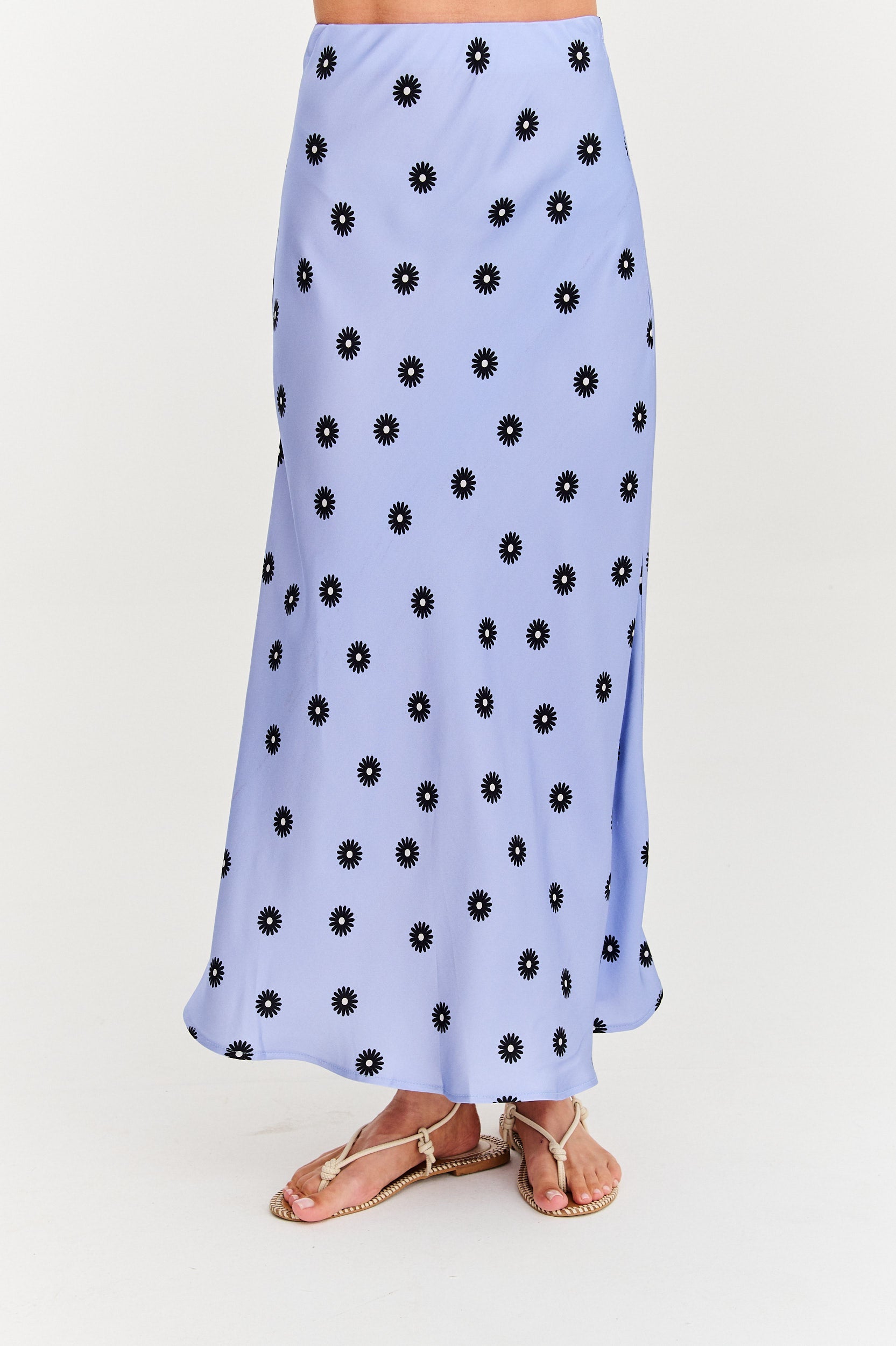 Drifted Blue Maxirock ist Leichtigkeit, eingefangen in Farbe und Bewegung. Der sanfte Blauton spiegelt die Ruhe der Ozeanwellen wider, während der zarte schwarze Sonnenprint eine unerwartete, verspielte Note hinzufügt. Fließend und feminin bewegt sich dieser Rock mit dir und fängt die Brise mit Anmut ein.