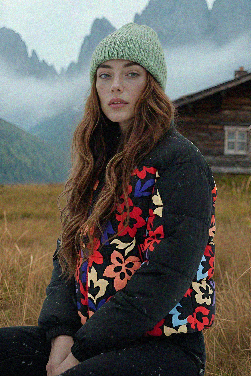 Das Muster, inspiriert von bunten, stilisierten Blumen, macht dieses Modell absolut einzigartig. Es ist ein Vorschlag für Frauen, die keine Angst haben, aufzufallen und sich durch Mode ausdrücken möchten. Die Ember Bellisse Jacke ist Ihr Weg, den Winter farbenfroher zu gestalten.