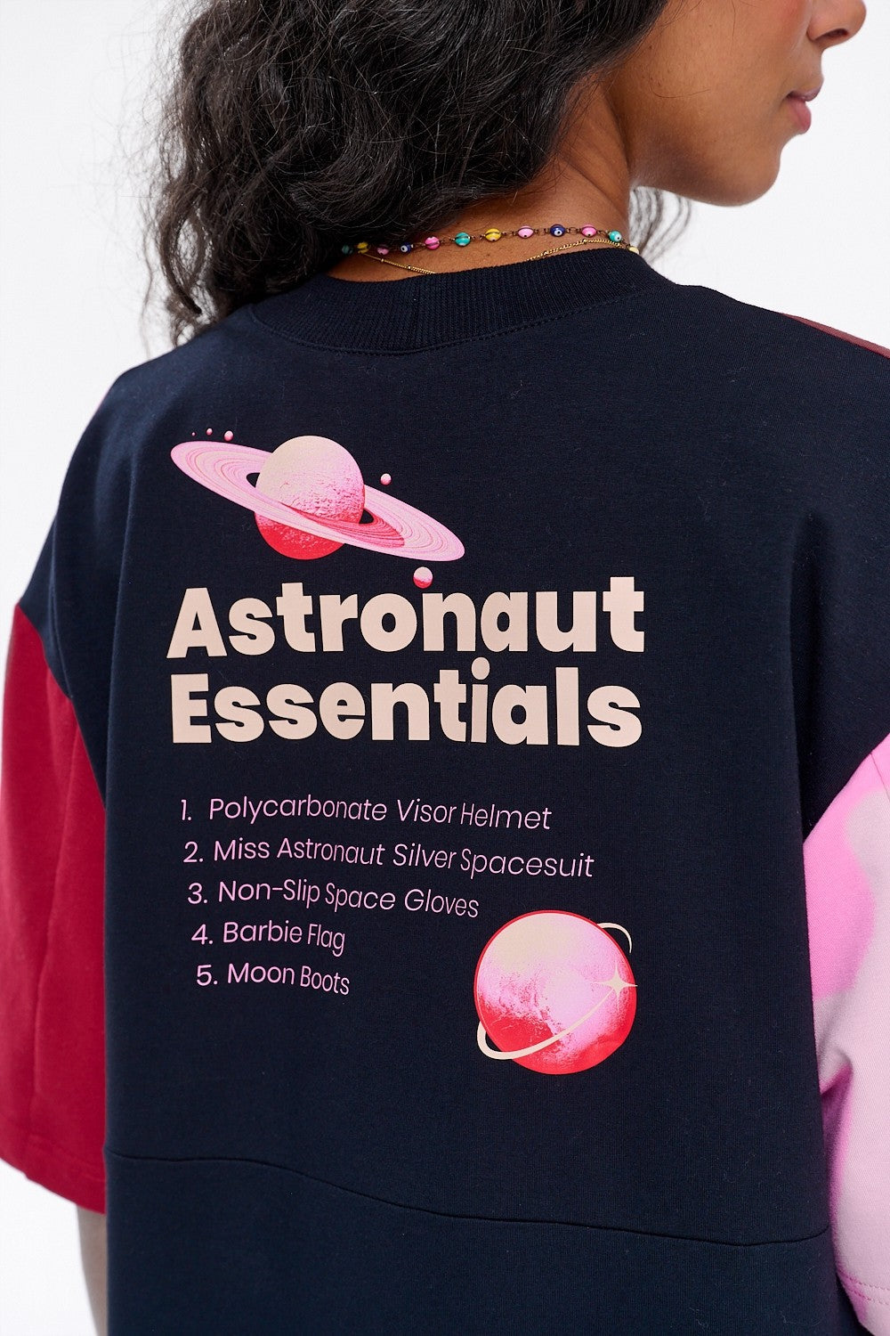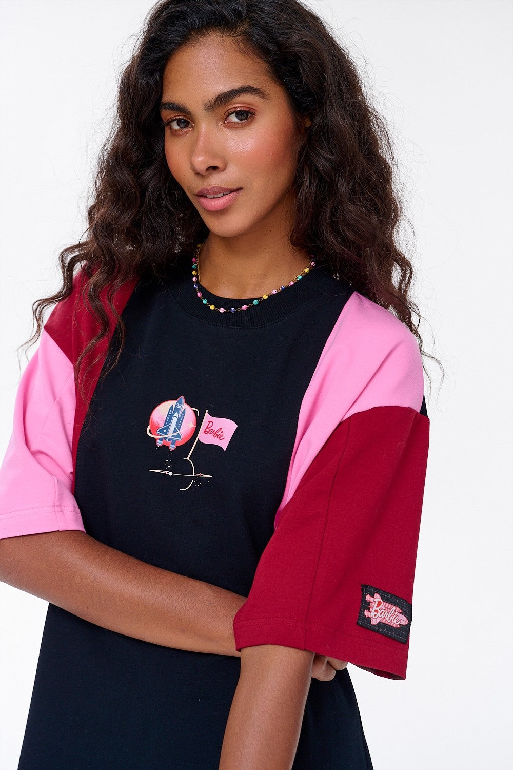 Space-inspired graphics give it character – a small symbol on front and a large, intriguing print on back depicting planets. A side slit at hem adds lightness and freedom of movement. Perfect with sneakers and a denim jacket.