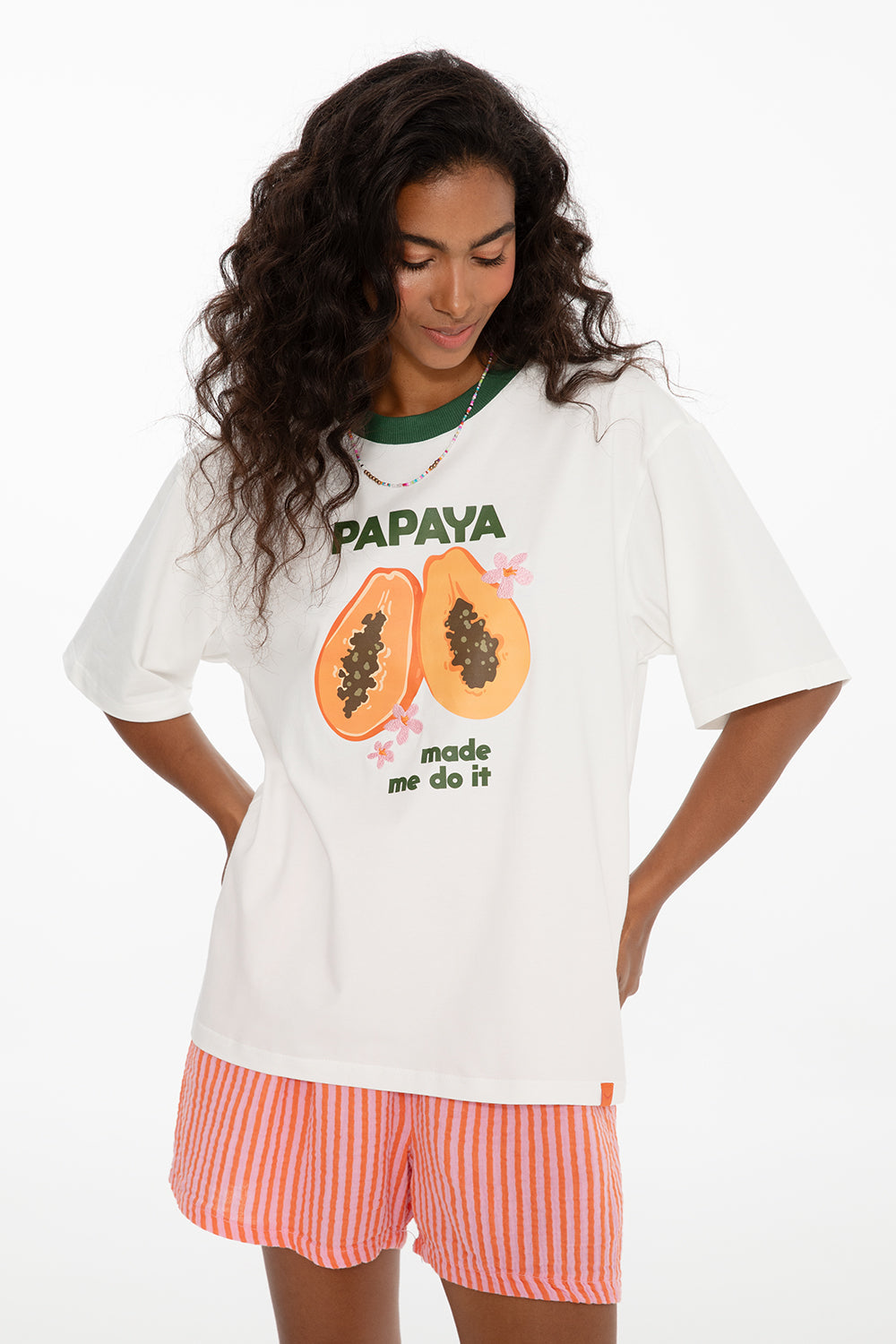 Trage es auf einem Sommerfestival, bei einem Spaziergang am Strand oder einfach, wenn du Lust hast, etwas... papaya-mäßig Freches zu tun.