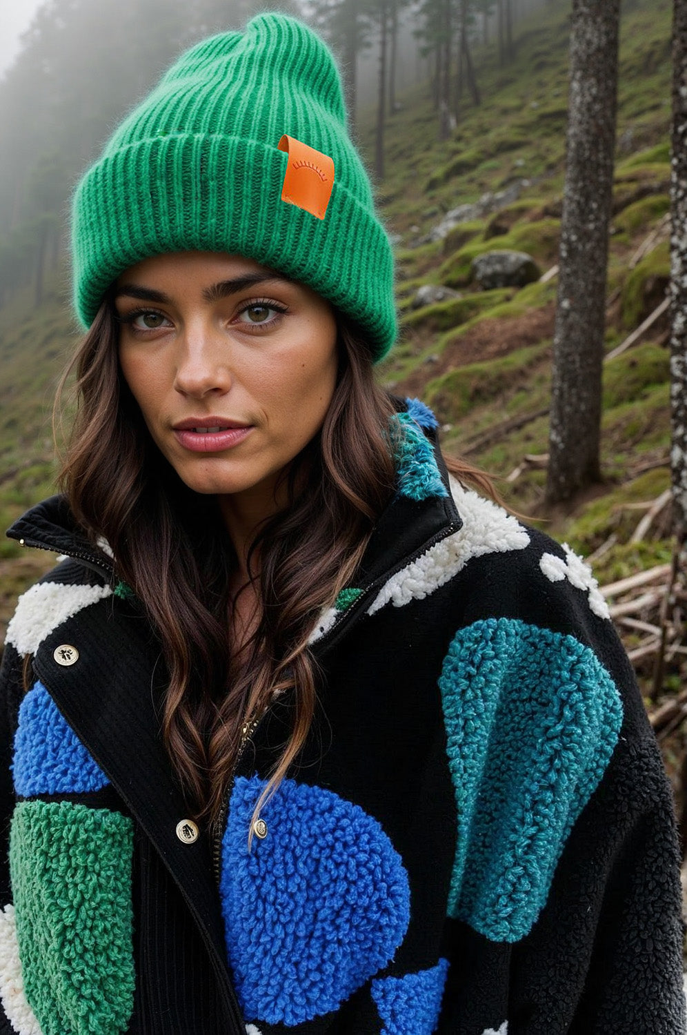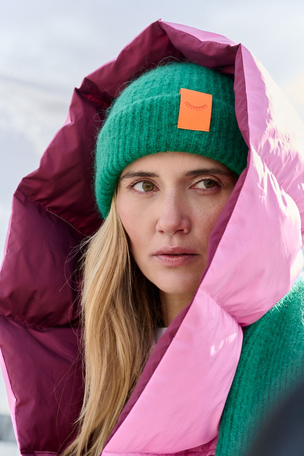 Kombinieren Sie die Mütze mit dem Puffy Emerald Schal, um ein modisches Set zu kreieren!