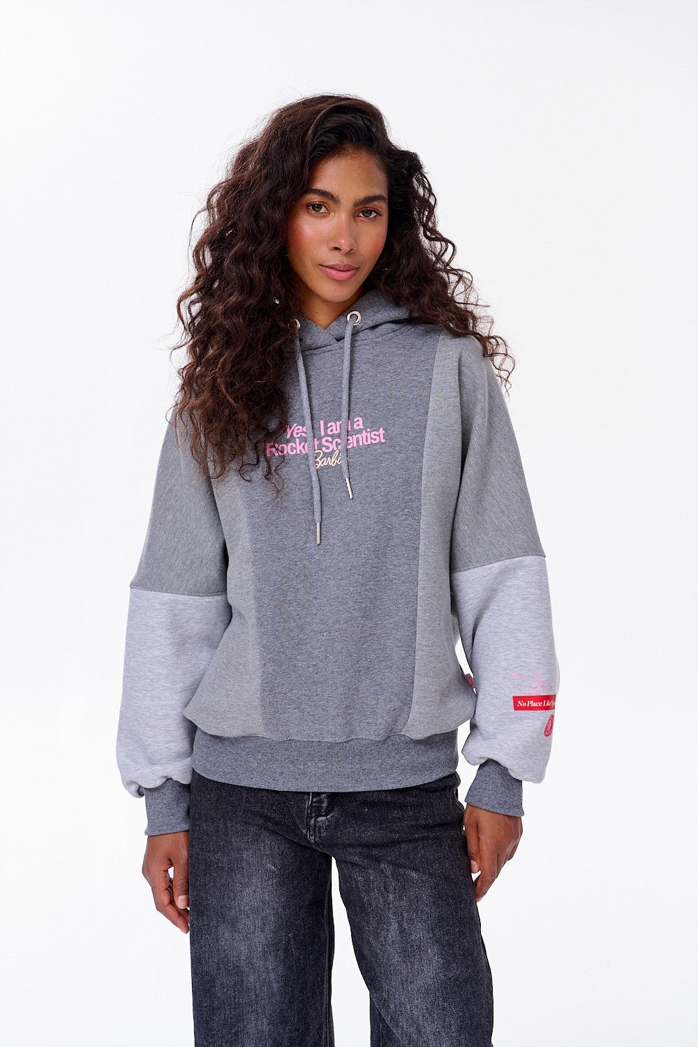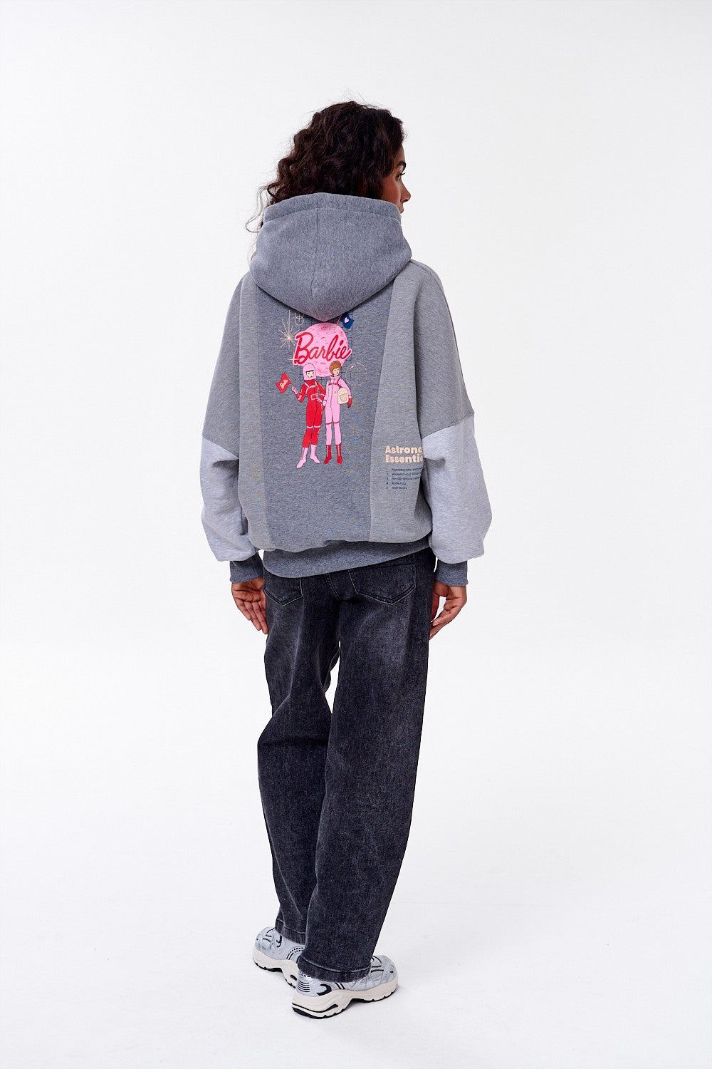 What sets it apart are bold details. You'll find pink slogan on front and a large, colorful retro graphic of Barbie astronaut on back. This is perfect everyday sweatshirt that will add character even to simple jeans.