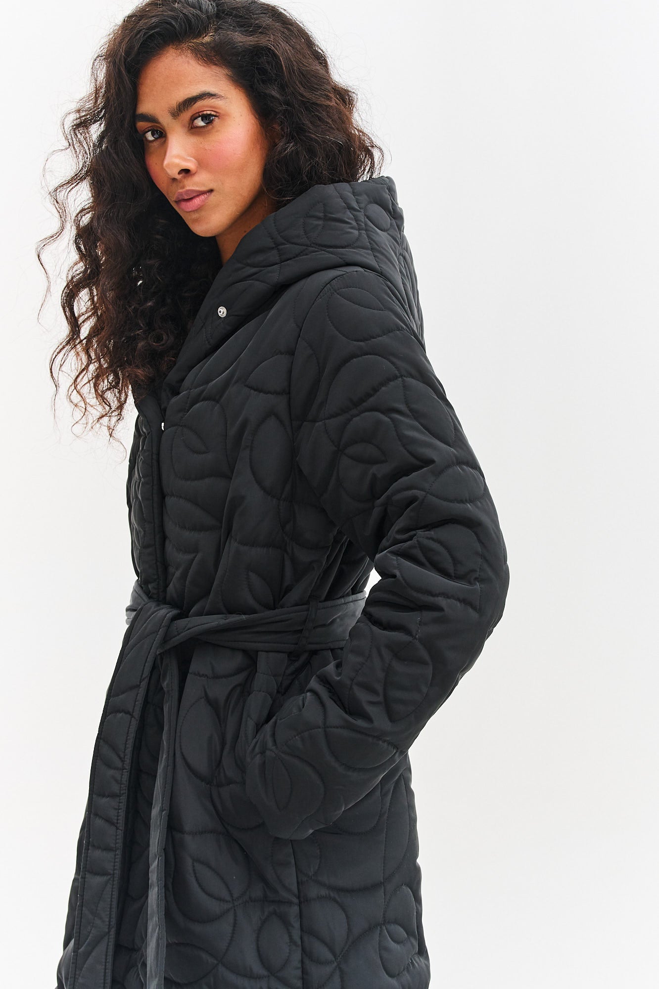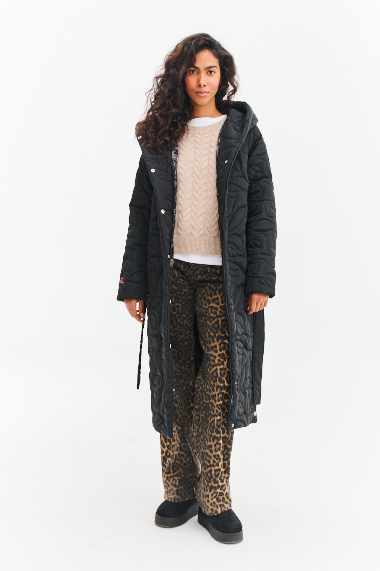 Anabelle Noir quilted coat is a choice for the woman who appreciates sophisticated simplicity. The long, quilted design not only looks beautiful but also effectively protects against the cold. The wide collar can be styled in many ways, and decorative snaps add character to the whole piece.