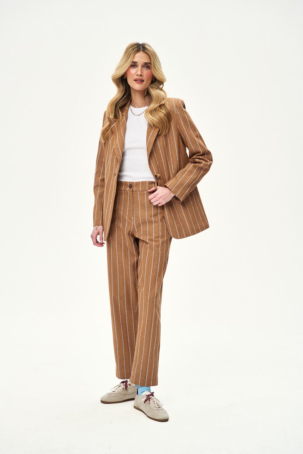 The Desert Wind blazer is a tribute to classic style with a modern twist. The warm, beige shade, broken by white stripes, brings to mind desert sands and summer travels. The cotton blend makes the fabric feel soft against the skin, and the contrasting blue lining adds a unique touch when the sleeves are rolled up.