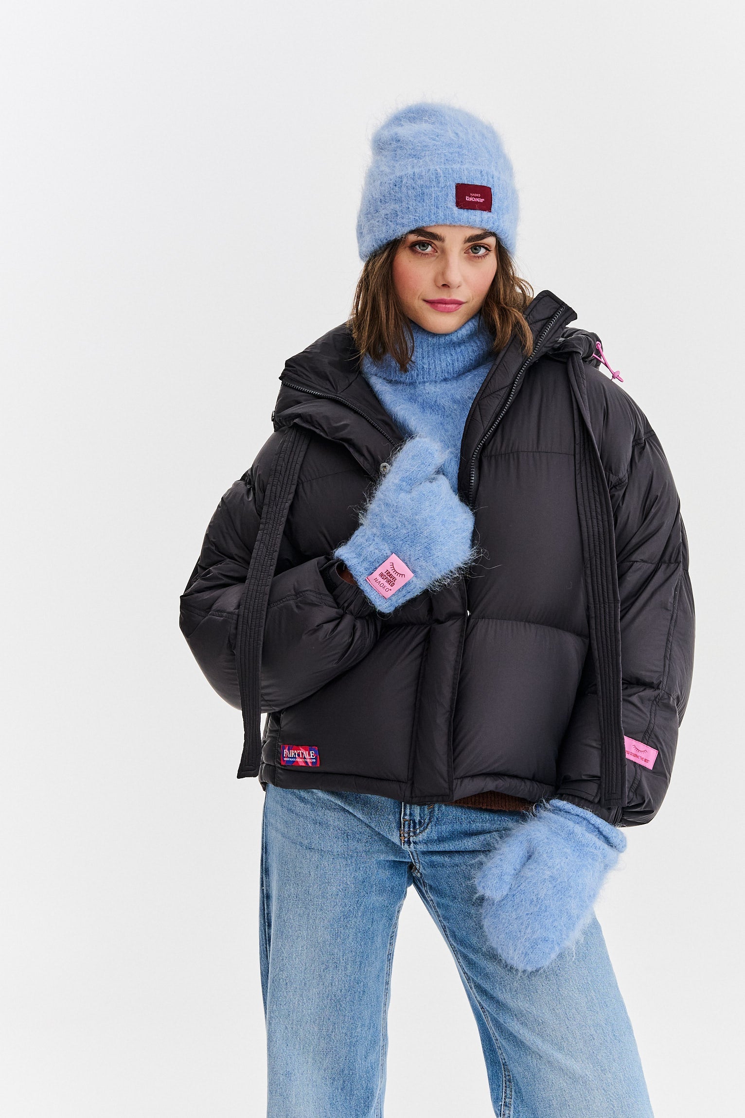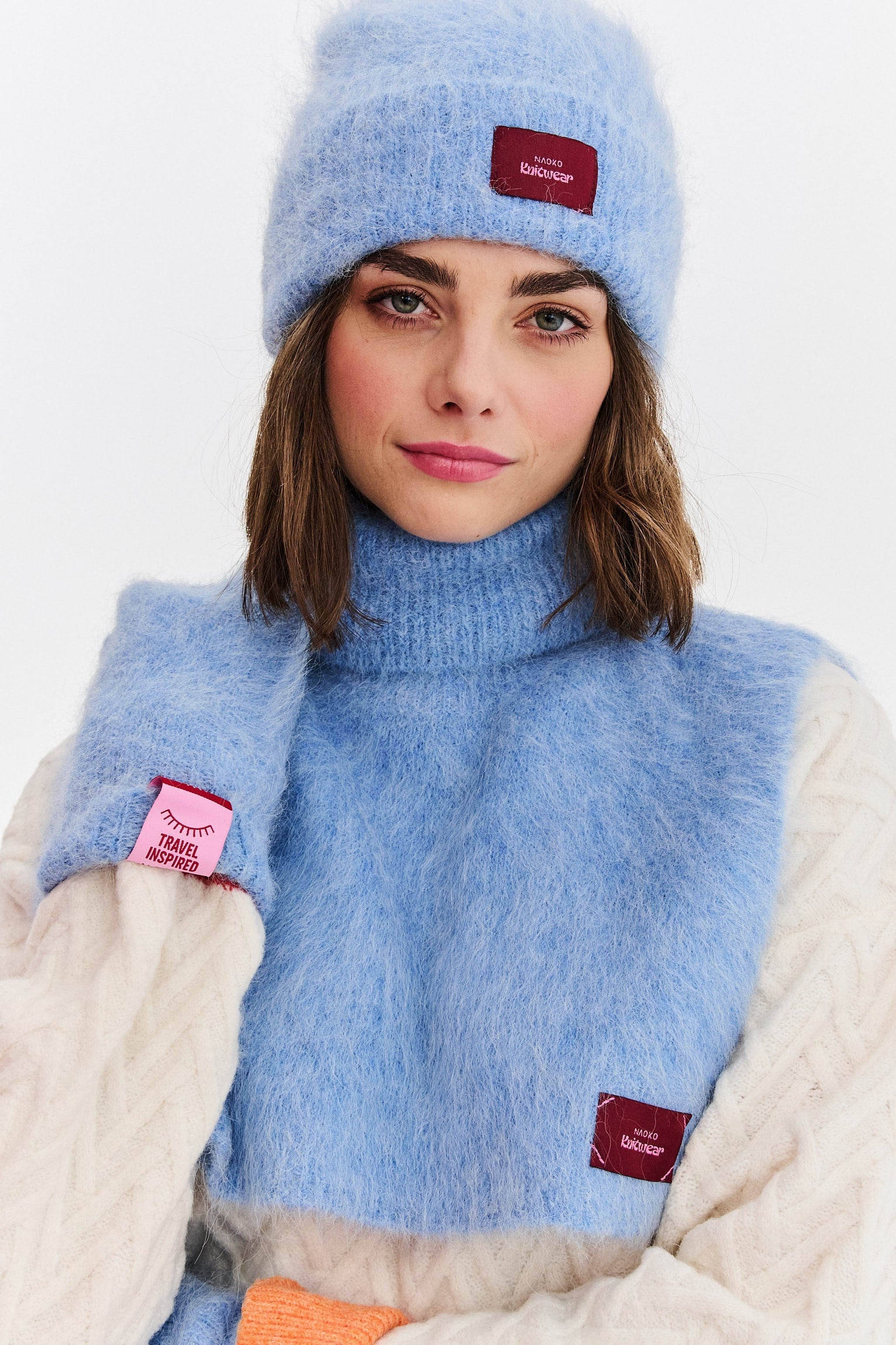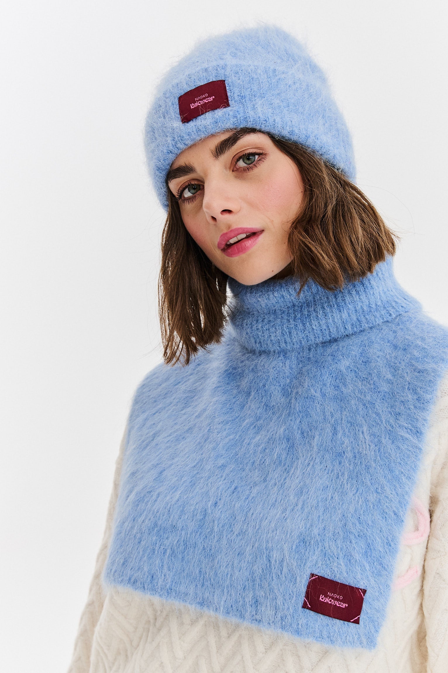 The alpaca wool blend guarantees unmatched softness and protection from the cold. The frosty, light-blue "Frost" shade is a versatile choice that pairs beautifully with many colors. For a cohesive and polished look, combine it with the Huggy Frost hat.