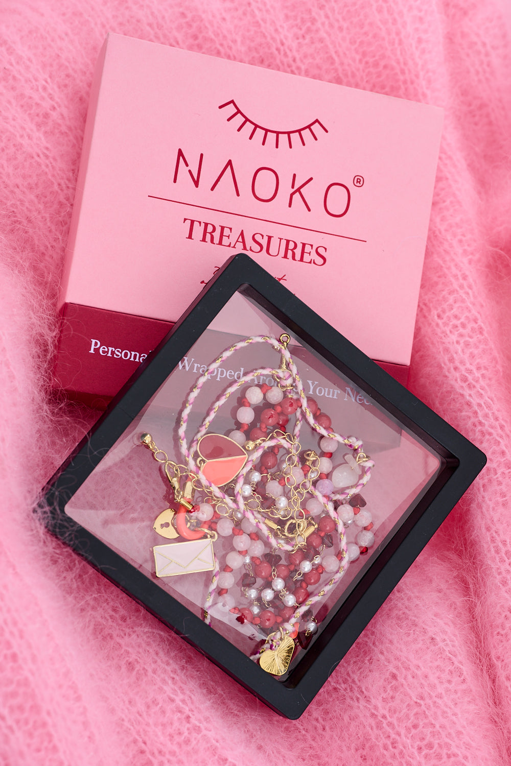 written in beads. "Love Letter" is gold-plated jewelry like an