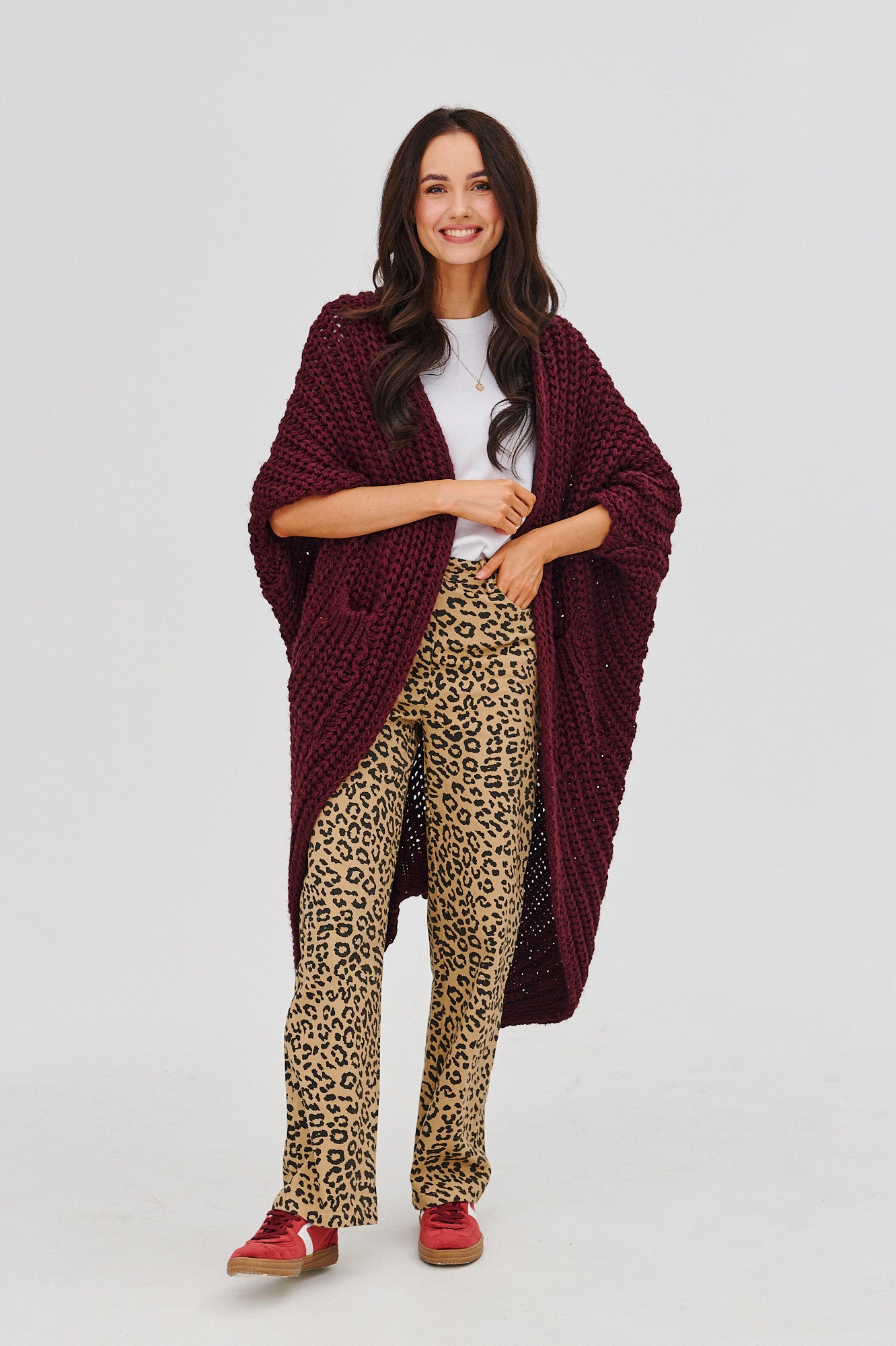 Merlot cardigan is a stylish and comfortable cardigan in a deep burgundy color, perfect for colder days. The model is made of thick weave, which provides not only warmth, but also a unique look. Loose cut that wraps around the silhouette and practical pockets make it a functional and comfortable piece of clothing.