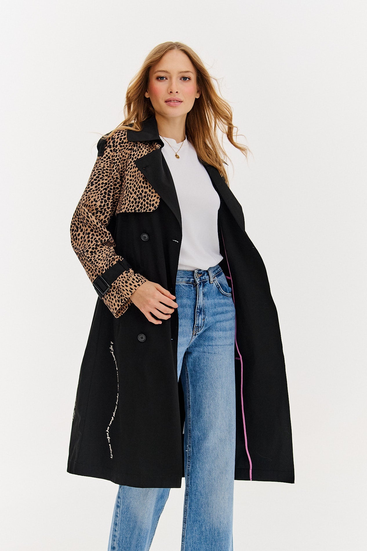 Midnight Roar classic trench coat is a bold interpretation of the classic coat that knows no compromise. Black combined with an energetic leopard print creates a look that cannot be overlooked – perfect for the #naokogirl who knows what she wants and is not afraid to express herself. Prints with inspiring slogans add a unique character and power – because fashion can be your everyday statement.