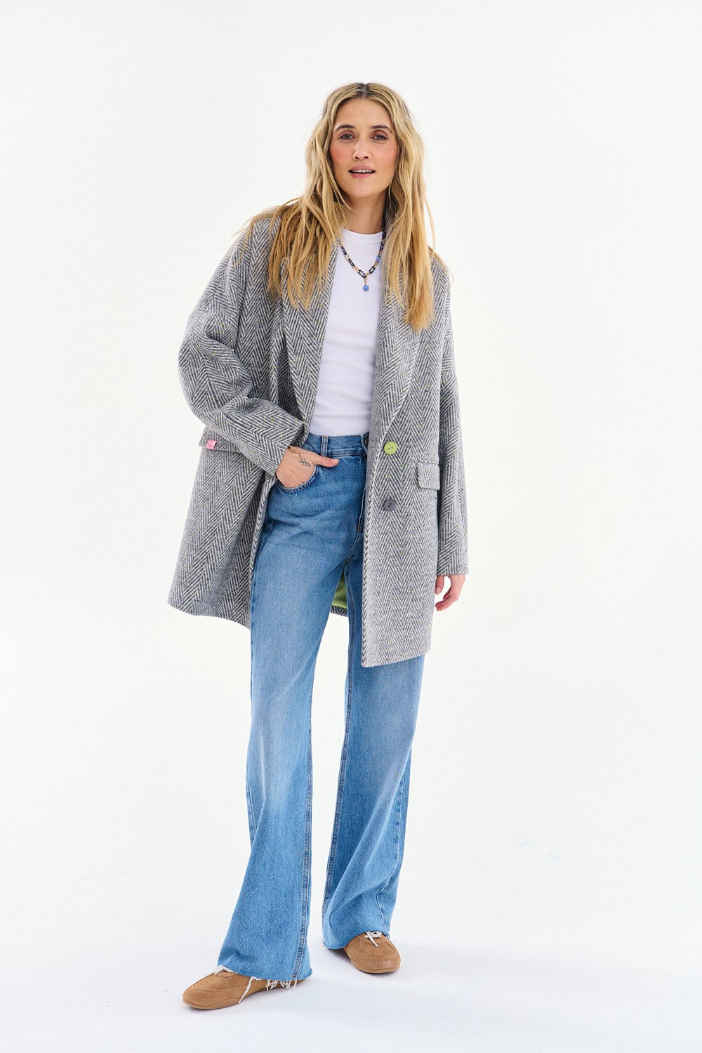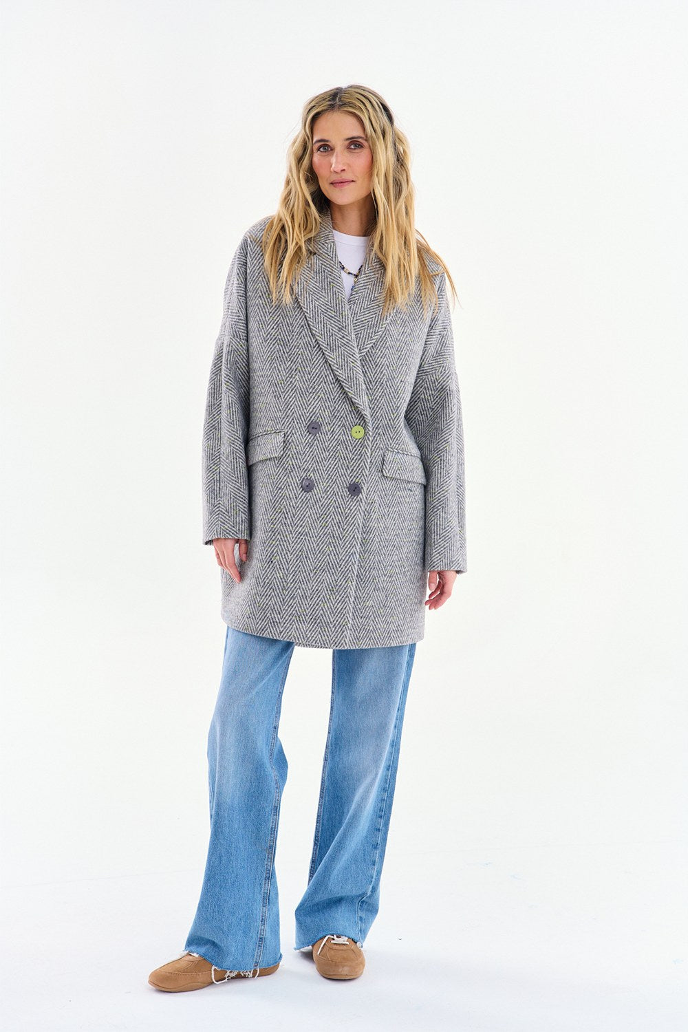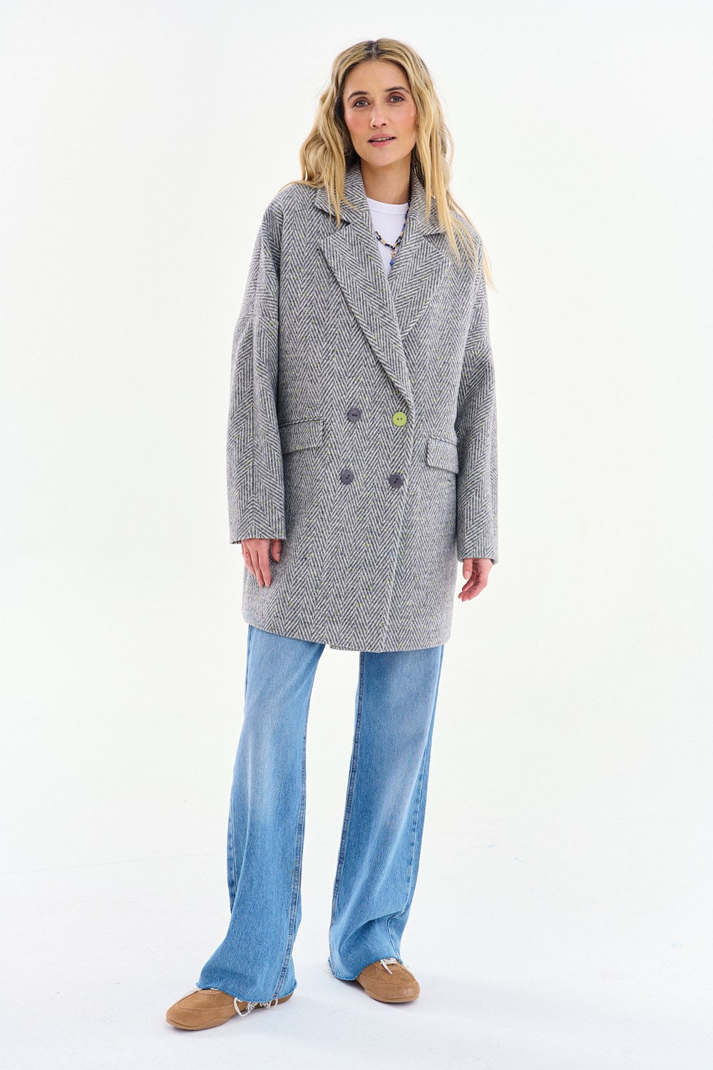 The Minted Shadows coat is a perfect choice for fans of minimalist oversize styles. The textured herringbone fabric adds depth, while the loose fit ensures maximum comfort.
