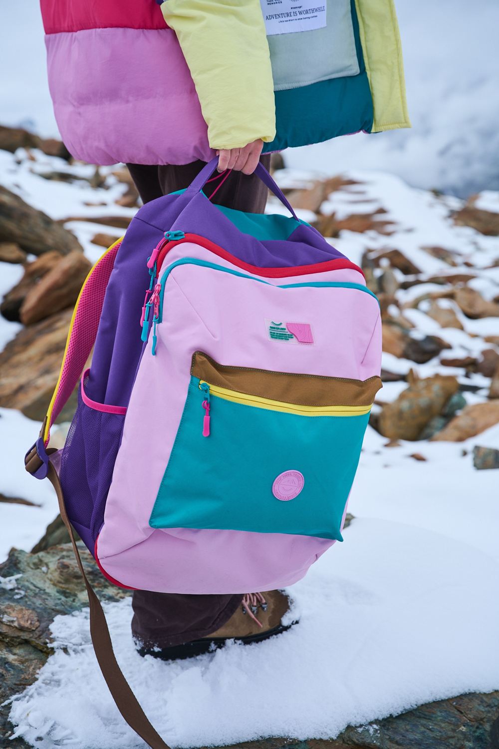 Color Bomb backpack is the perfect blend of functionality and fashionable retro design. Inspired by the '90s, it impresses with its bold color combination. It features a large main compartment, a smaller front pocket, and side mesh pockets, so you can easily organize all your belongings.