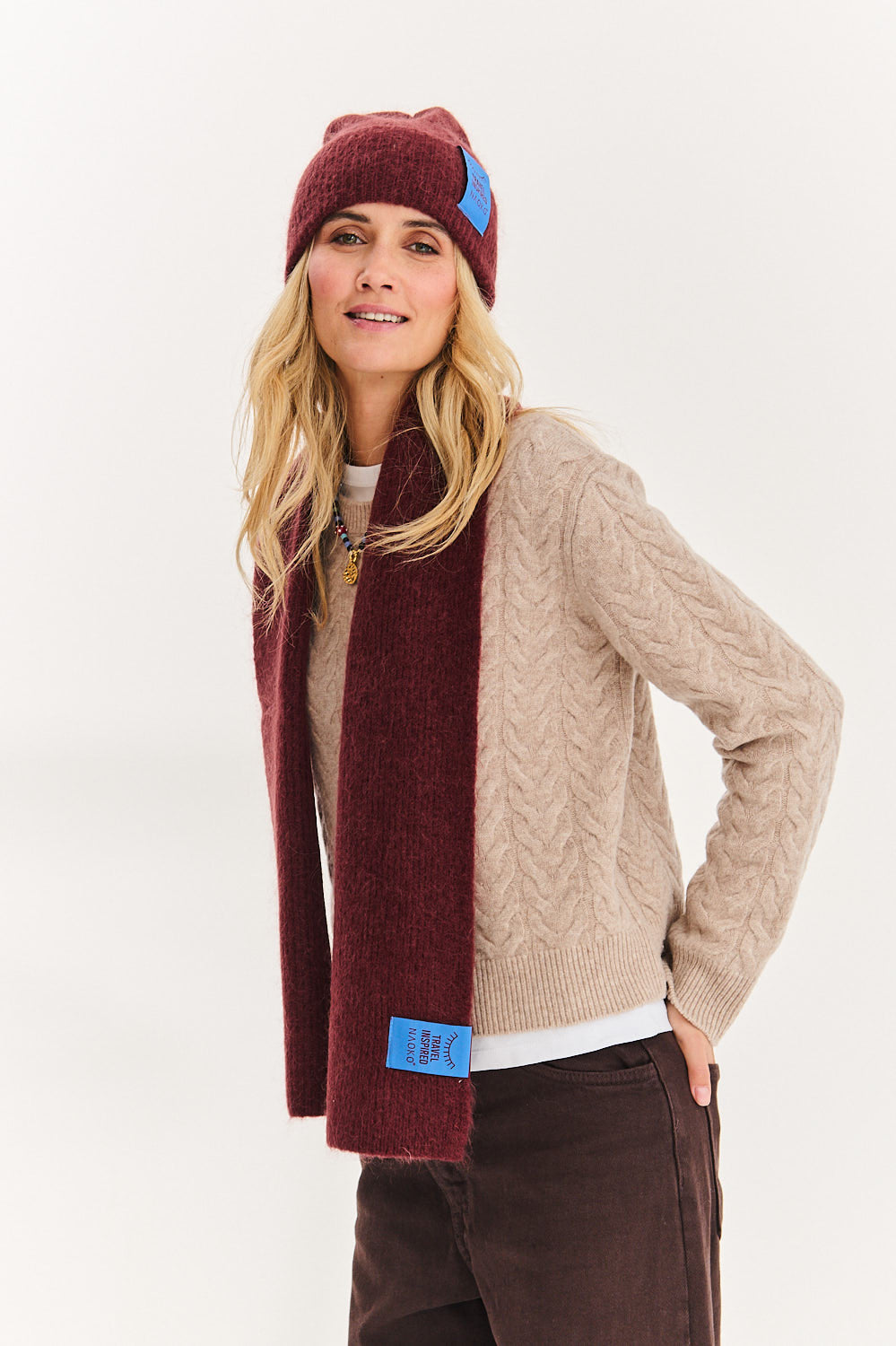 Combine the cap with the Puffy Merlot scarf to create a fashionable set!