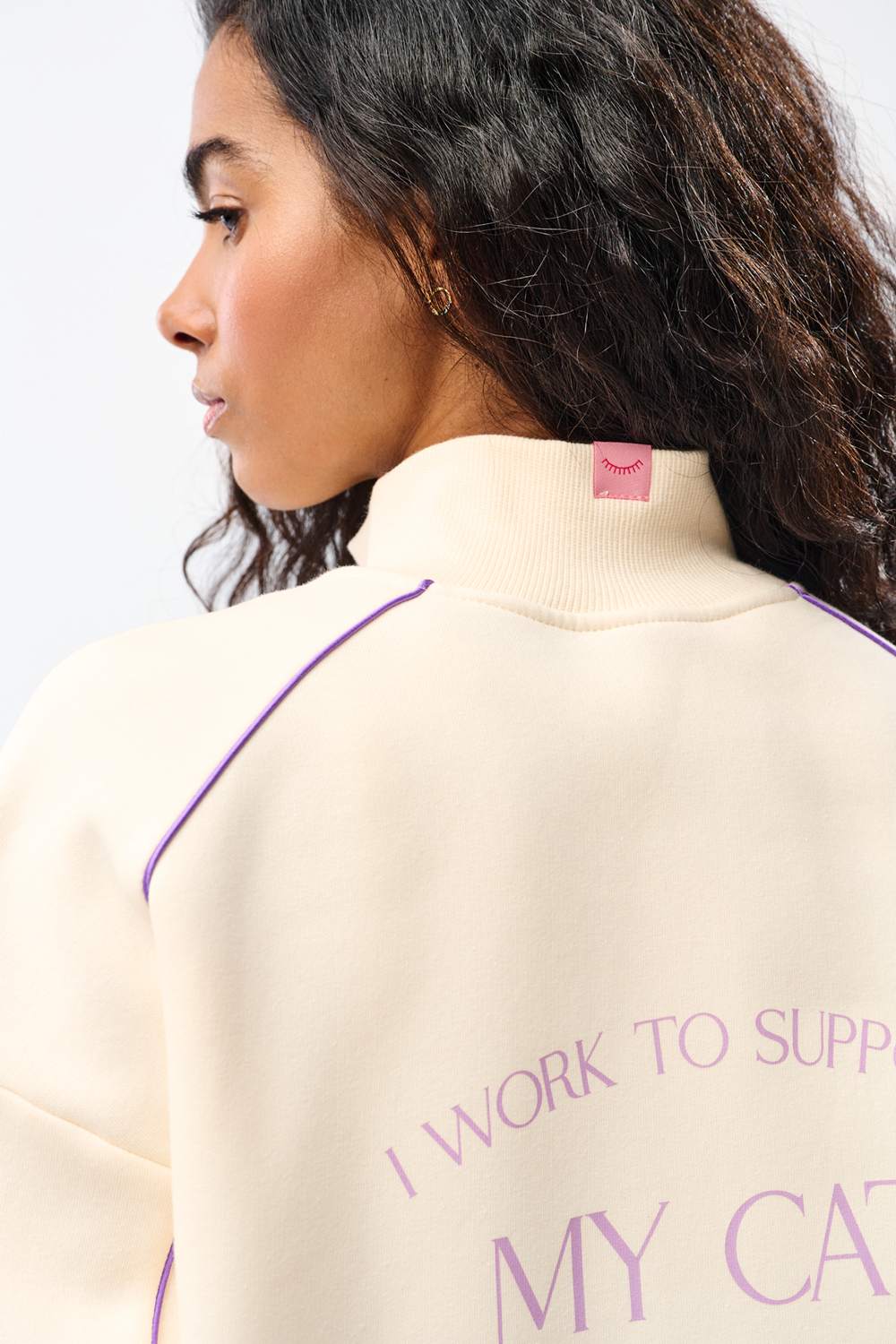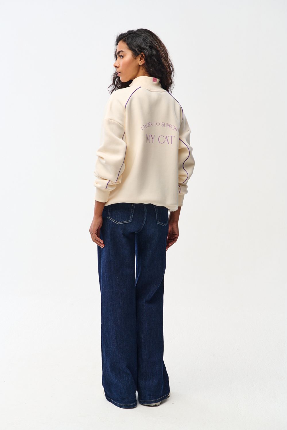 The “I work to support my cat" slogan will bring a smile to the face of everyone you meet. Style this sweatshirt with beige joggers for a trendy monochrome look, or throw it over a simple dress. It’s the perfect style for a relaxing afternoon at home or a walk in the park.