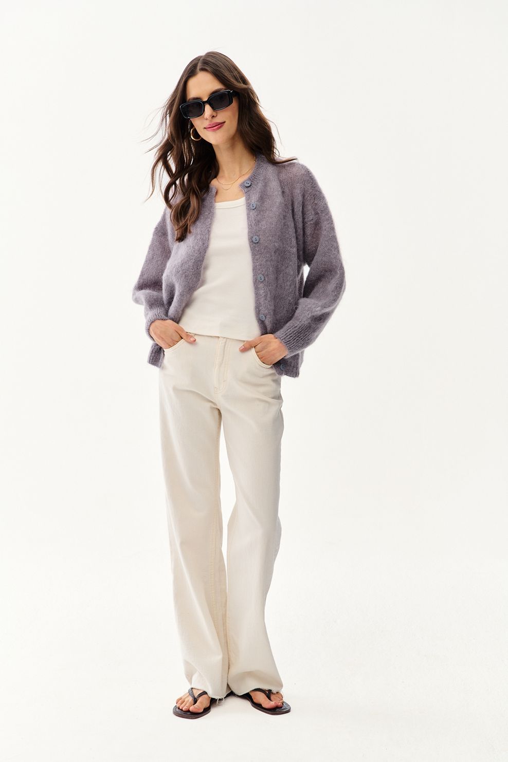Silent Hill mohair cardigan captivates with its simplicity and elegance. The gray color is incredibly elegant and easy to style. The fluffy texture of the mohair provides warmth and incredible softness. The perfectly matched buttons emphasize the cohesiveness of the design.
