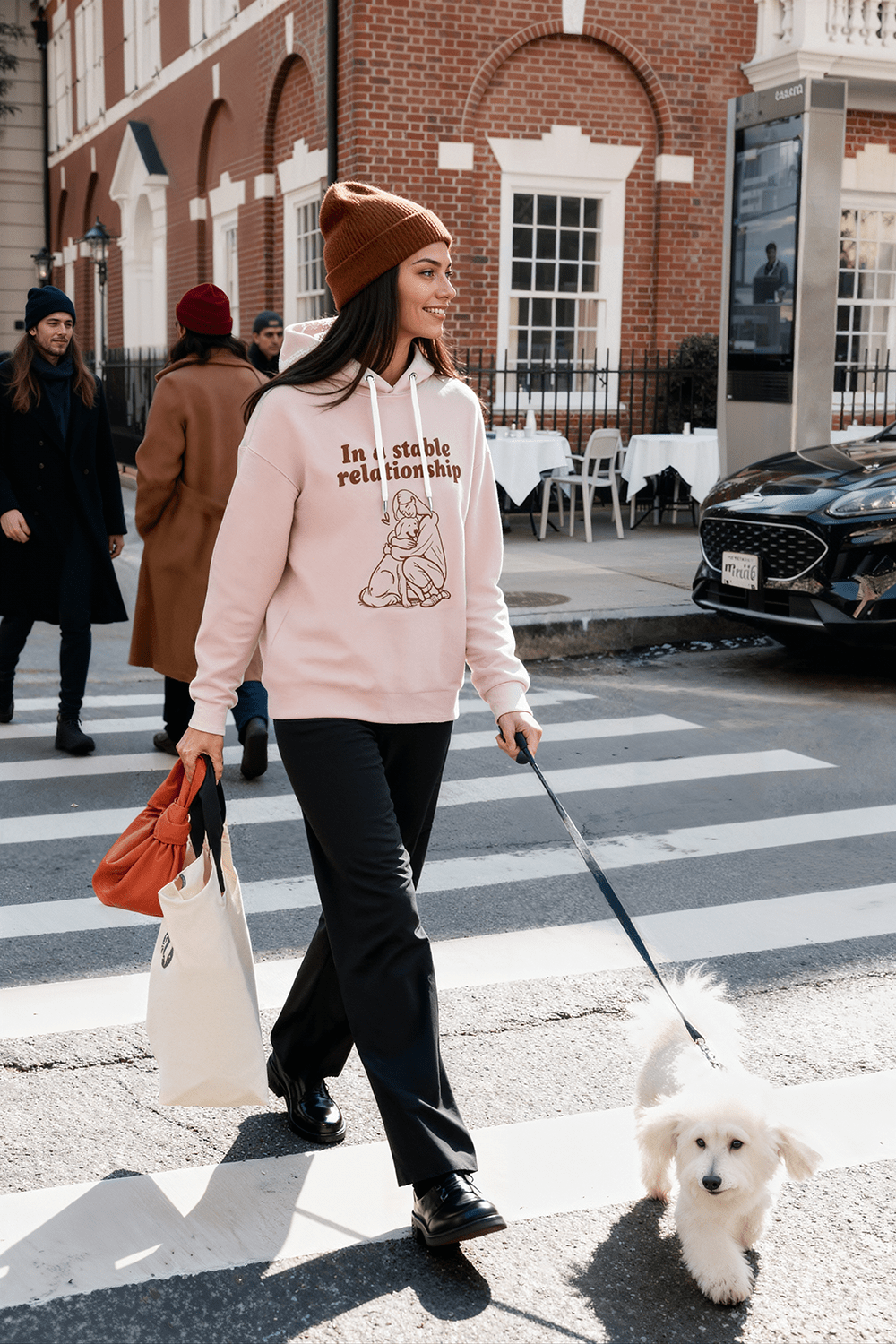 The Stable Relationship Hoodie is more than just clothing – it's a declaration of love for your pet. A charming graphic of a girl cuddling a dog and a message that says it all: "In a stable relationship" appear against a light, cream background. The long cut and oversized hood ensure maximum comfort.