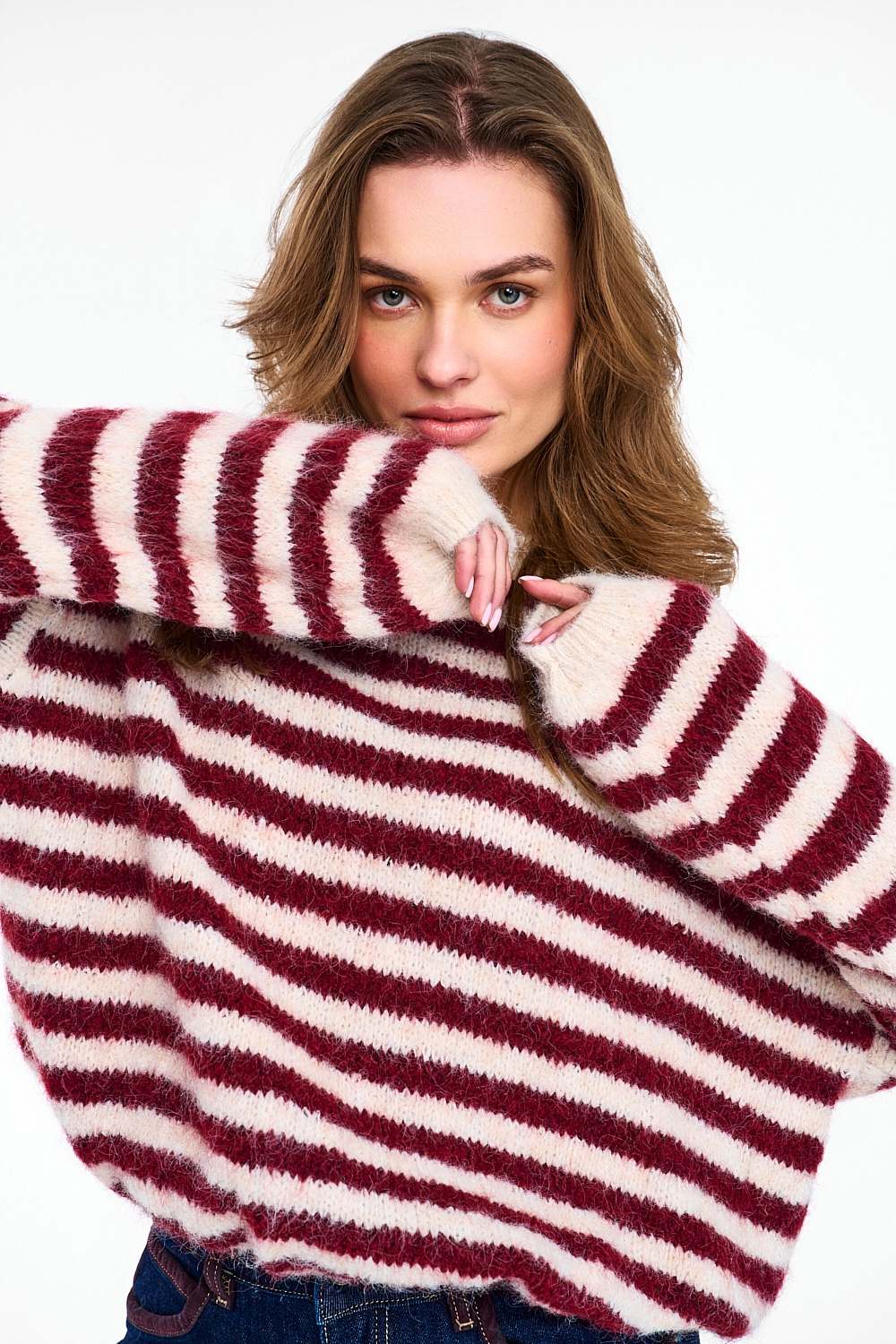 Frosted Wine sweater attracts attention with its unique striped pattern in a deep burgundy shade. This color perfectly complements the fall/winter color palette. The sweater's classic cut makes it incredibly versatile, and the meticulous finishing emphasizes its high quality.
