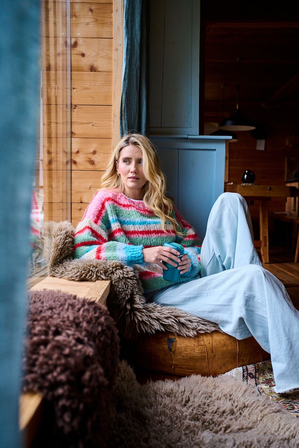 Pure Joy sweater is a real explosion of positive energy. Its design is based on a harmonious combination of joyful colors: pink, red, blue and turquoise. This is a sweater that proves that fashion can be great fun and a way to express yourself.