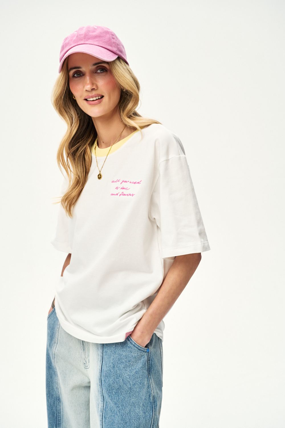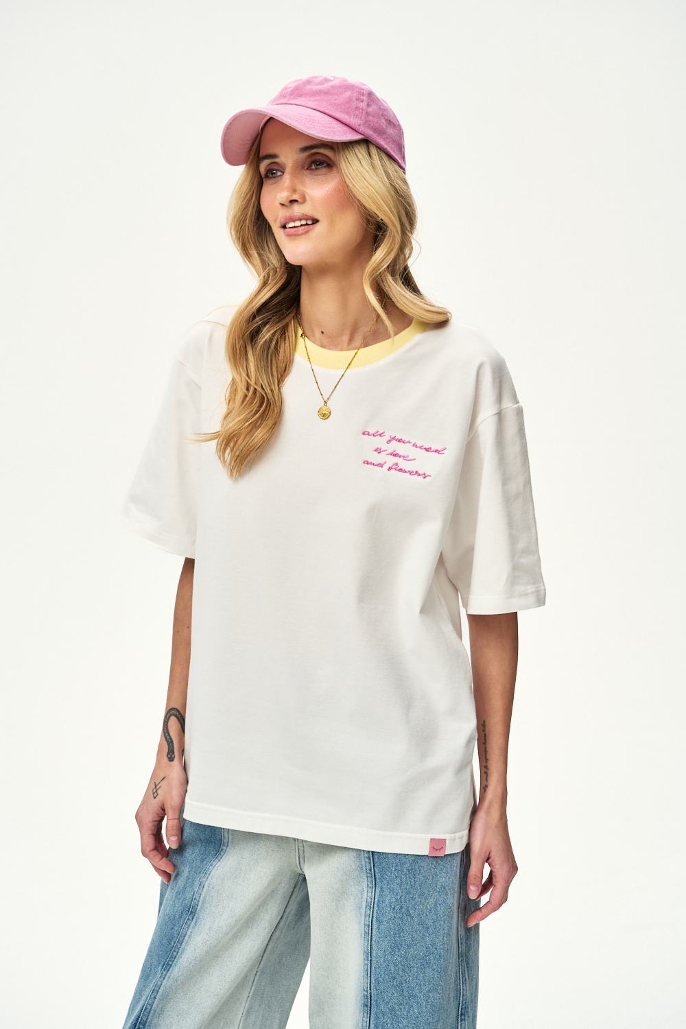 The Sunday Market T-shirt catches the eye with its contrasting neckline finish and original print. The slogan "all you need is love and flowers" is a motto that perfectly suits lazy Sunday mornings.