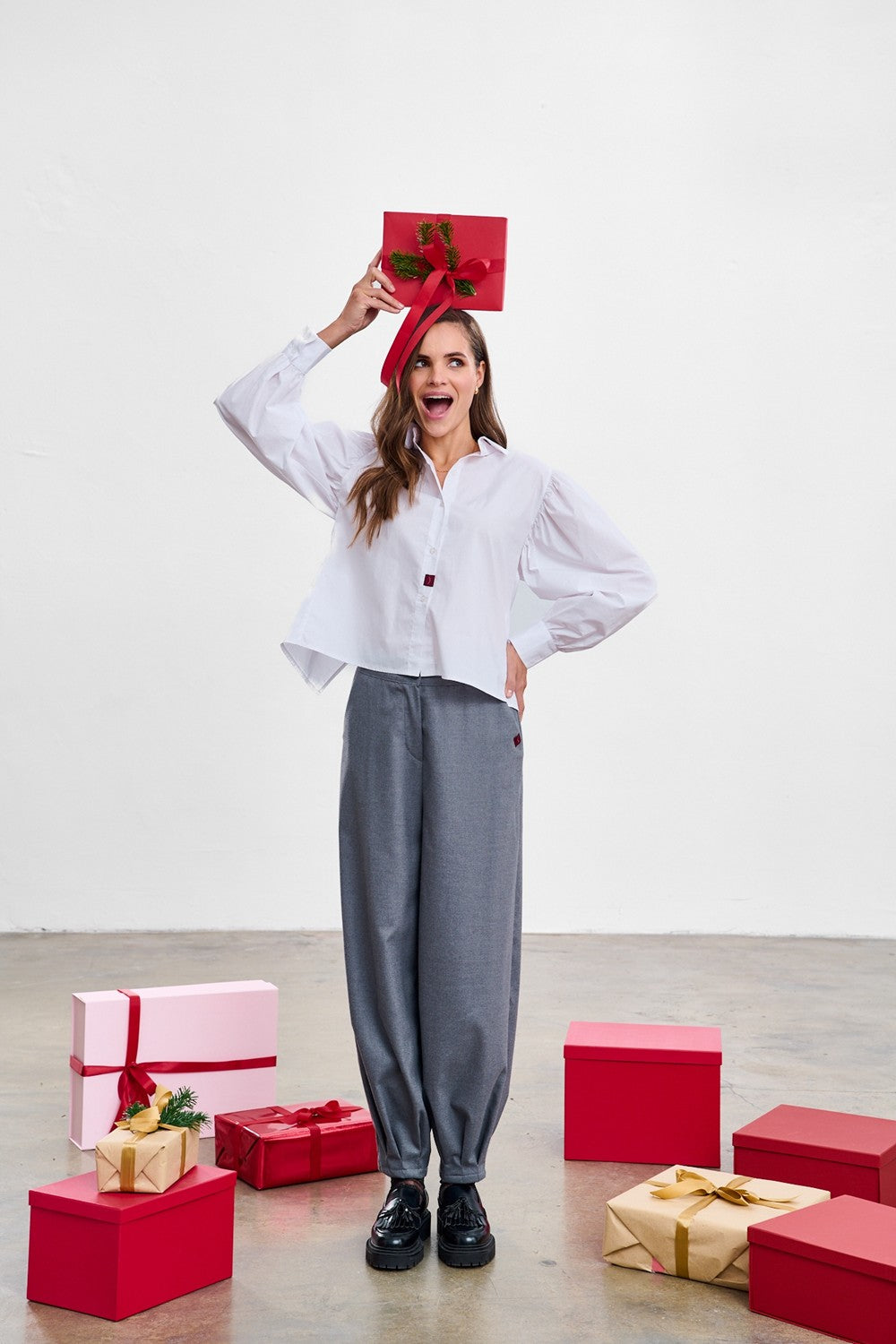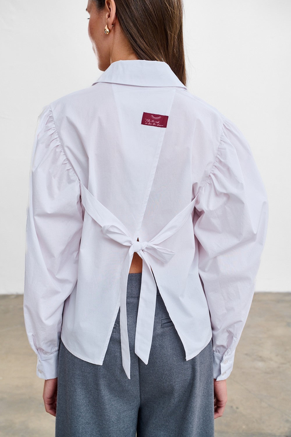 Take The Risk shirt redefines the concept of a white shirt. The front retains the classic collar and buttons, but the back is a true revolution – an open back with ties adds sensuality. Made of cotton with elastane, it provides comfort and a great fit.