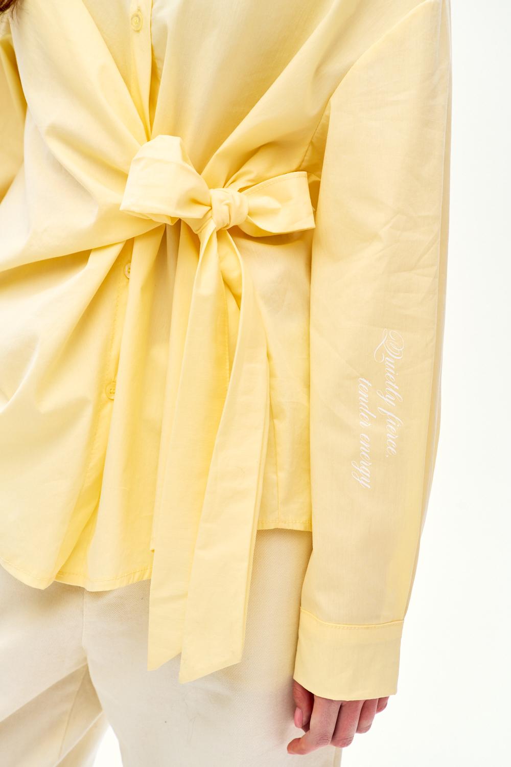 The Gentle Lilly shirt combines a classic collar with a fancy knot at the waist that shapes the silhouette. The subtle lily of the valley embroidery on the collar is a discreet nod to nature and the details that make a difference.